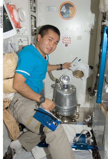 (16 Aprile 2009) Michael Barratt sta attivando l’esperimento Agricultural Camera (AgCam) nel laboratorio Destiny.