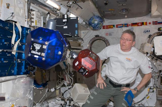 Il 28 Settembre, Fossum è tornato a lavorare con l’esperimento Synchronised Position Hold, Engage and Reorient Experiment Satellite (SPHERES), all’interno di Kibo. Questo è decisamente uno degli esperimenti preferiti dall’astronauta americano e prevede l’impiego di microsatelliti delle dimensioni di una palla da basket, per testare le tecniche di volo in formazione e di rendezvous automatico, impiegando algoritmi di controllo.