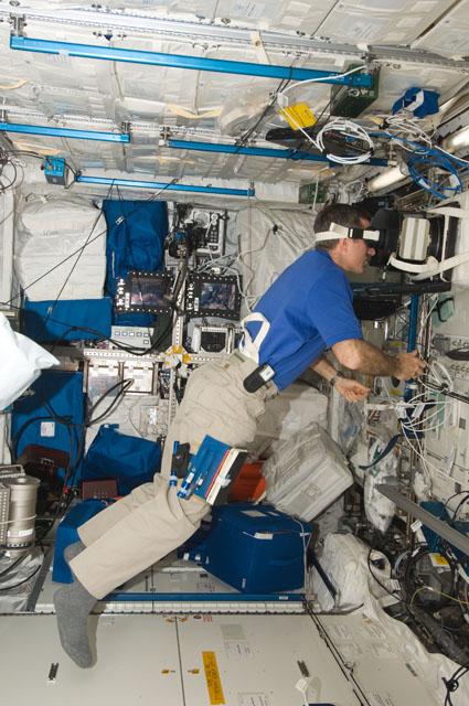 L’equipaggio ha concluso la settimana del 16 Marzo svolgendo esperimenti biomedici, pulendo e riordinando il Multipurpose Logistics Module (MPLM) Leonardo e stendendo un cavo per le comunicazioni all’interno del modulo Destiny.
