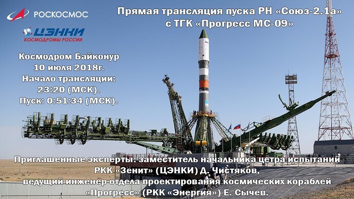 - Трансляция пуска РН «Союз-2.1а» с ТГК «Прогресс МС-09»