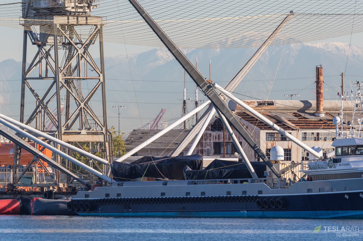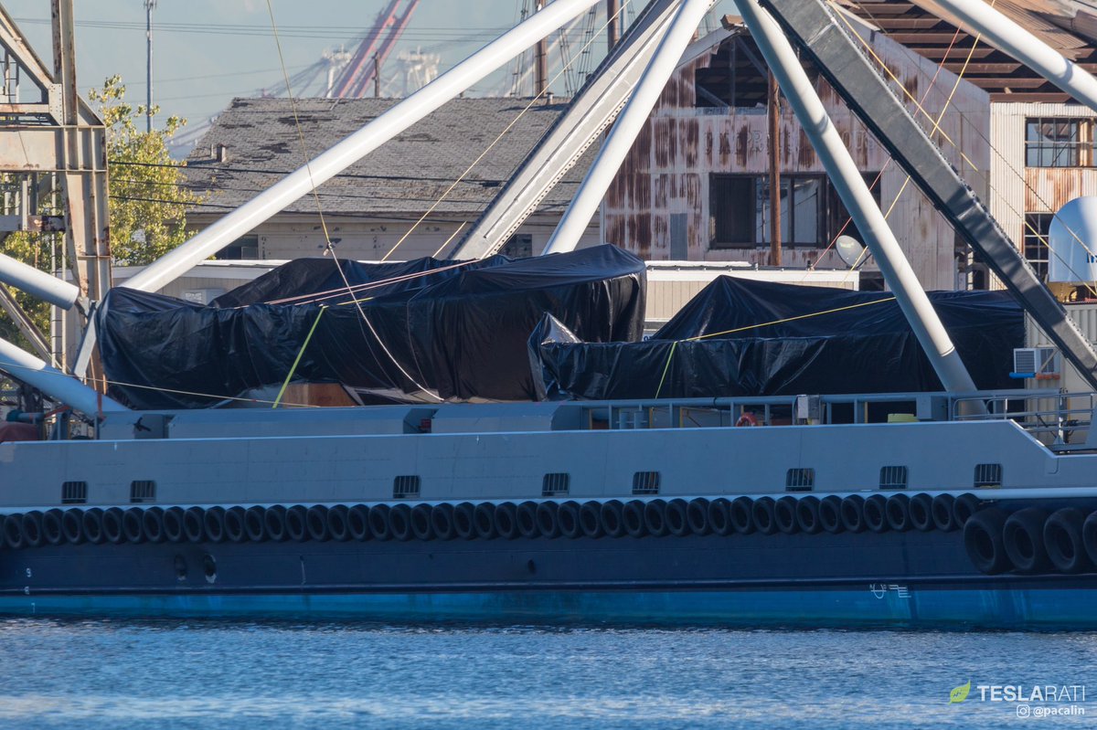 Pur essendo più vicina alla costa, la chiatta con il primo stadio è rientrata dopo la nave che ha raccolto i fairings.