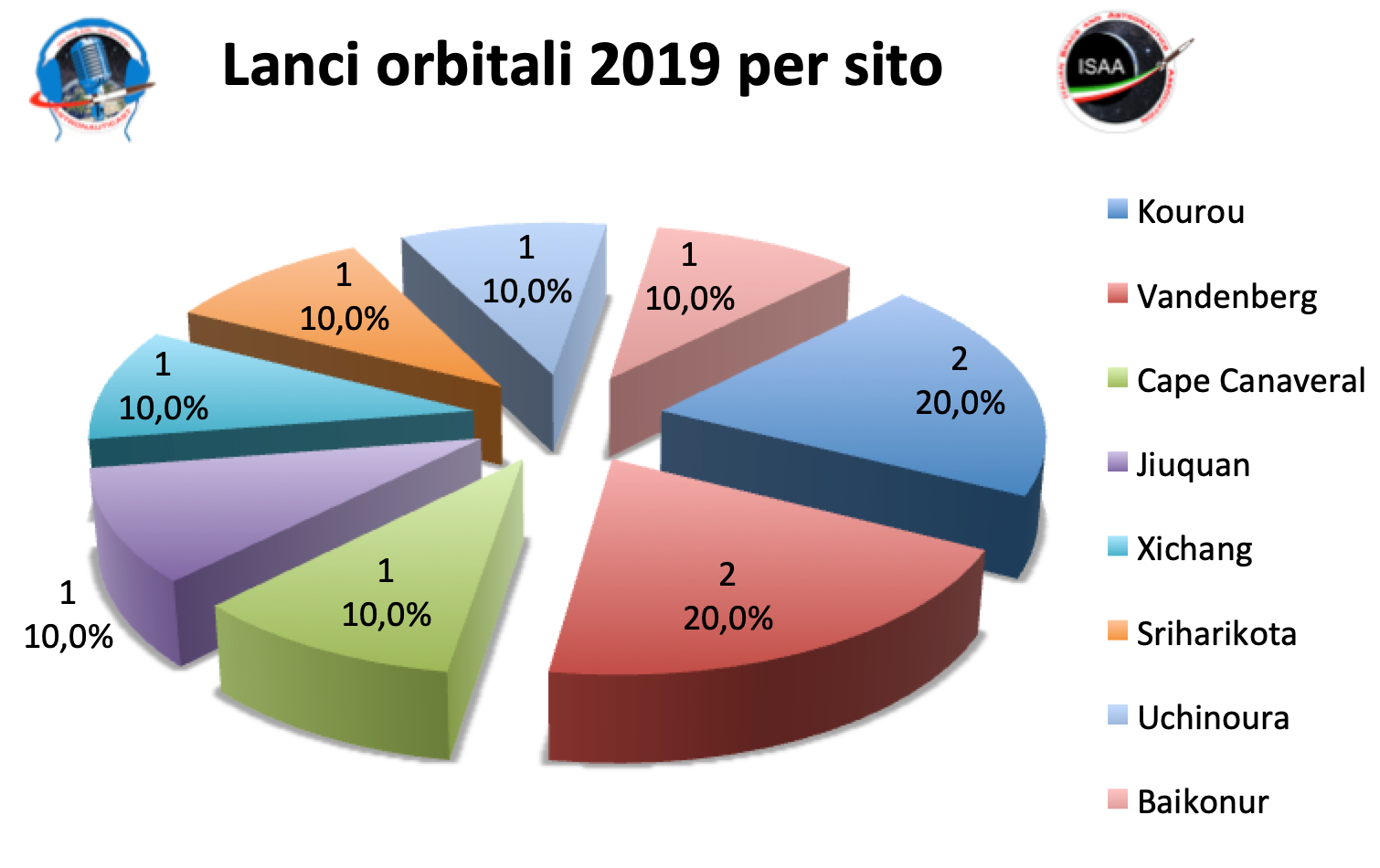 Infine per quanto riguarda i siti di lancio sono partiti benissimo Kourou e Vandenberg che sono gli unici ad aver visto finora più di un lancio.