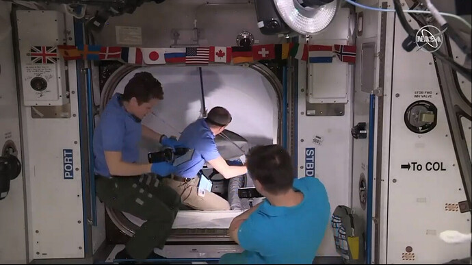 Continuano i campionamenti dell’aria effettuati avvantaggiandosi della mancanza di circolazione convettiva, che mantiene relativamente separate le atmosfere di ISS, IDA e Dragon (quando sarà aperta).