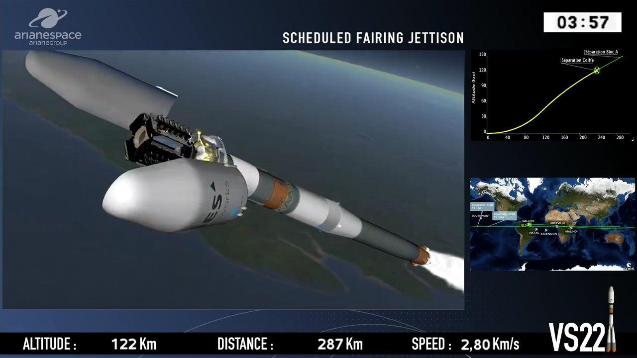 Press kit dal quale apprendiamo che la massa del carico (quattro satelliti) portata in orbita sarà di 3.198 kg.
