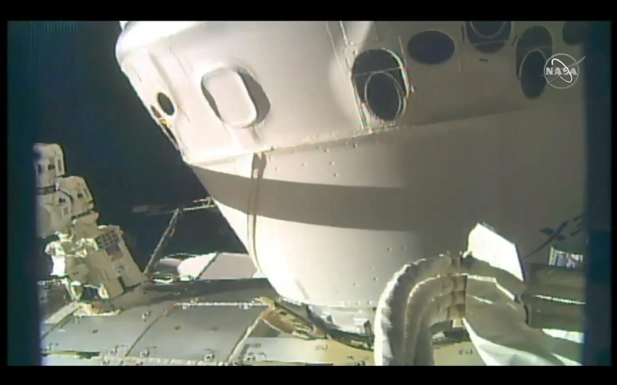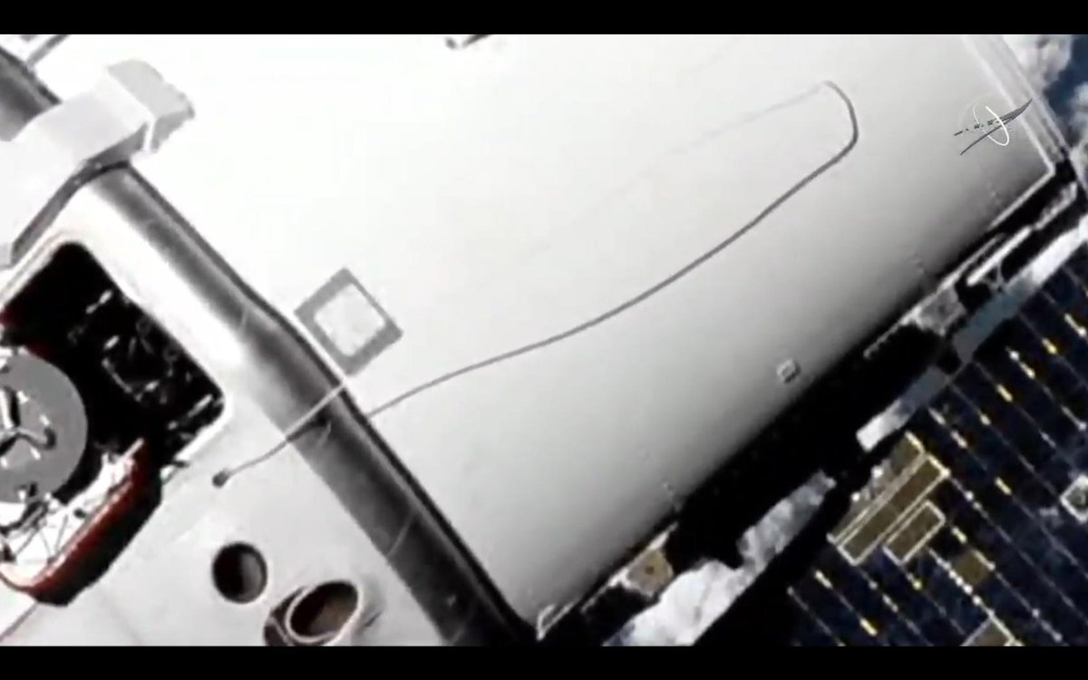 Dopo poco è stato accertato che si trattava di uno dei cavi della rampa di lancio che non si sono staccati al momento del decollo del Falcon 9. Comunque non intralciavano l’attracco che è quindi proseguito regolarmente.