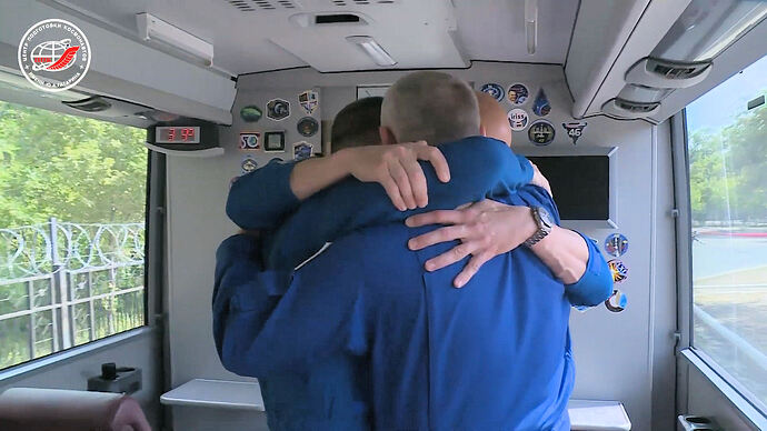 Mi è sembrato un momento toccante perché (anche se i tre astronauti sono ben consapevoli della presenza di due telecamere e almeno un fotografo) non era un gesto steorotipato, di quelli tipici della crew che si mette in posa per mostrare il proprio affiatamento, ma una manifestazione spontanea, nata dalla condivisione del momento.