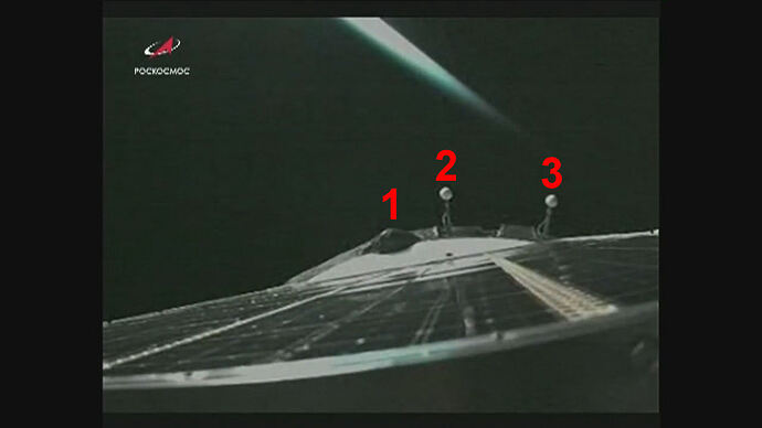 Chi ha seguito le immagini delle preparazione dei veicoli Sojuz e Progress riconoscerà negli oggetti indicati con 2 e 3 un dettaglio misterioso tante volte notato. Sono quelle “levette con pallina in cima” (scusate il gergo strettamente tecnico