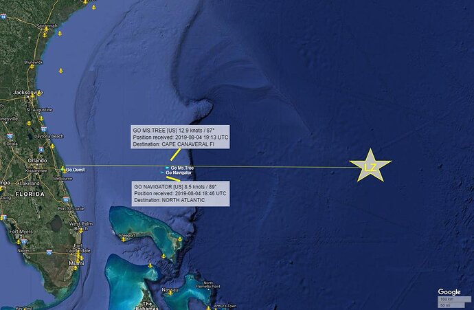 Le due navi di recupero semi-ogive sono circa a metà “strada” verso la zona di rendez-vous.