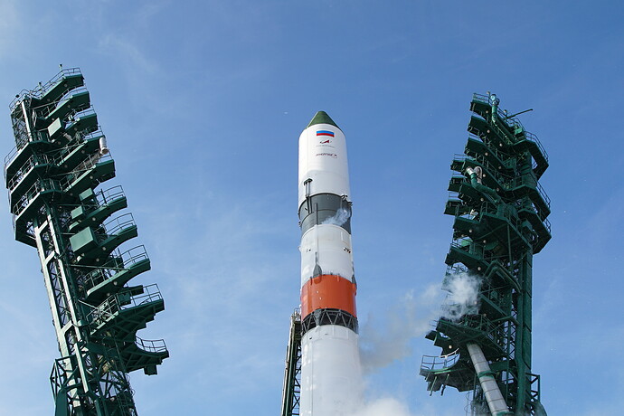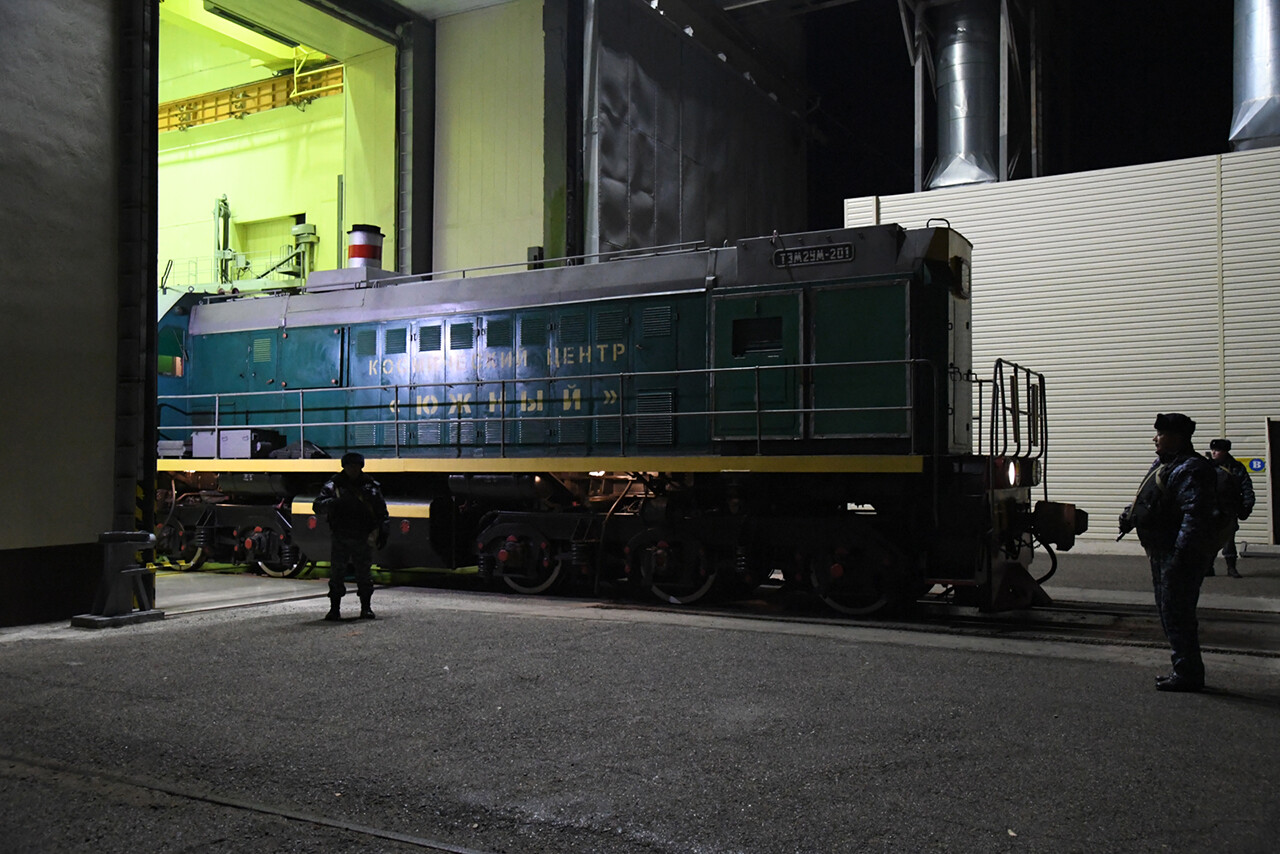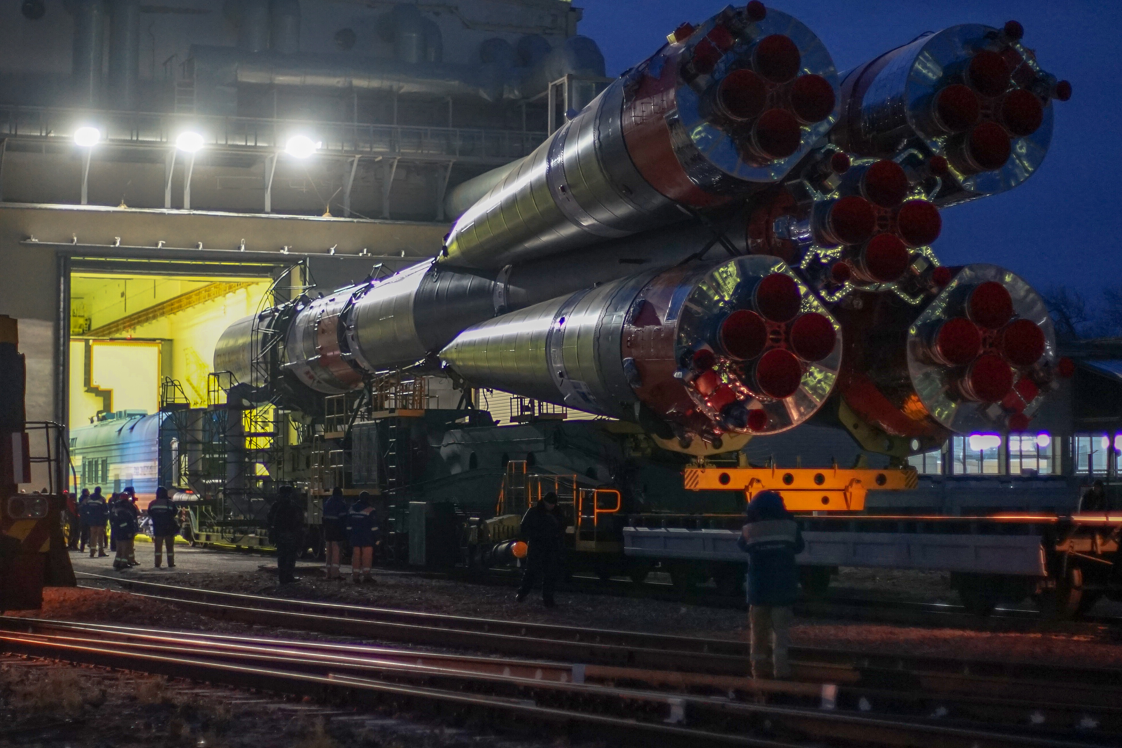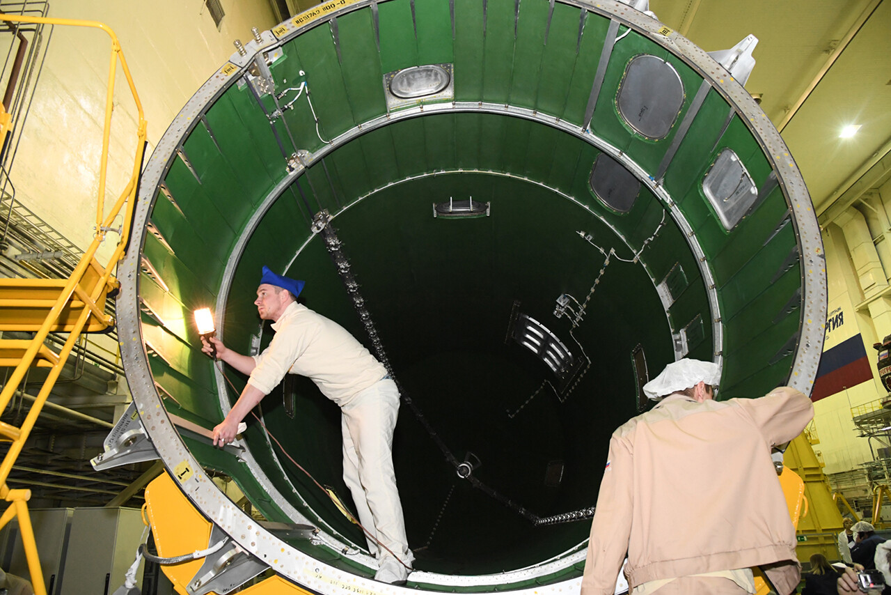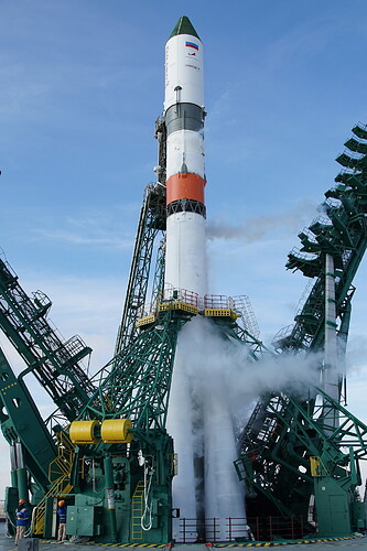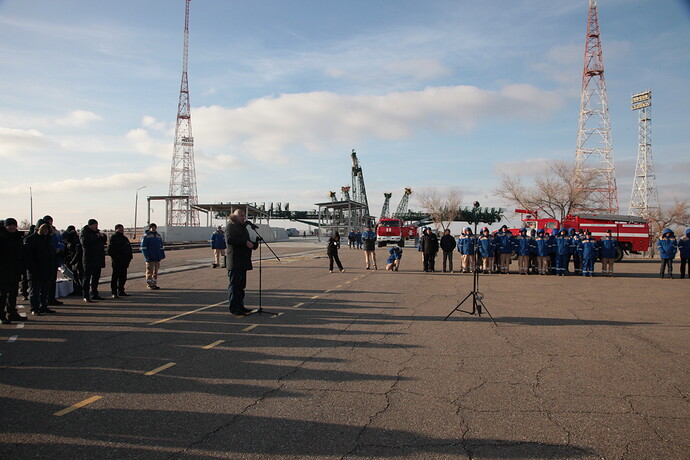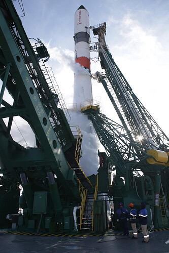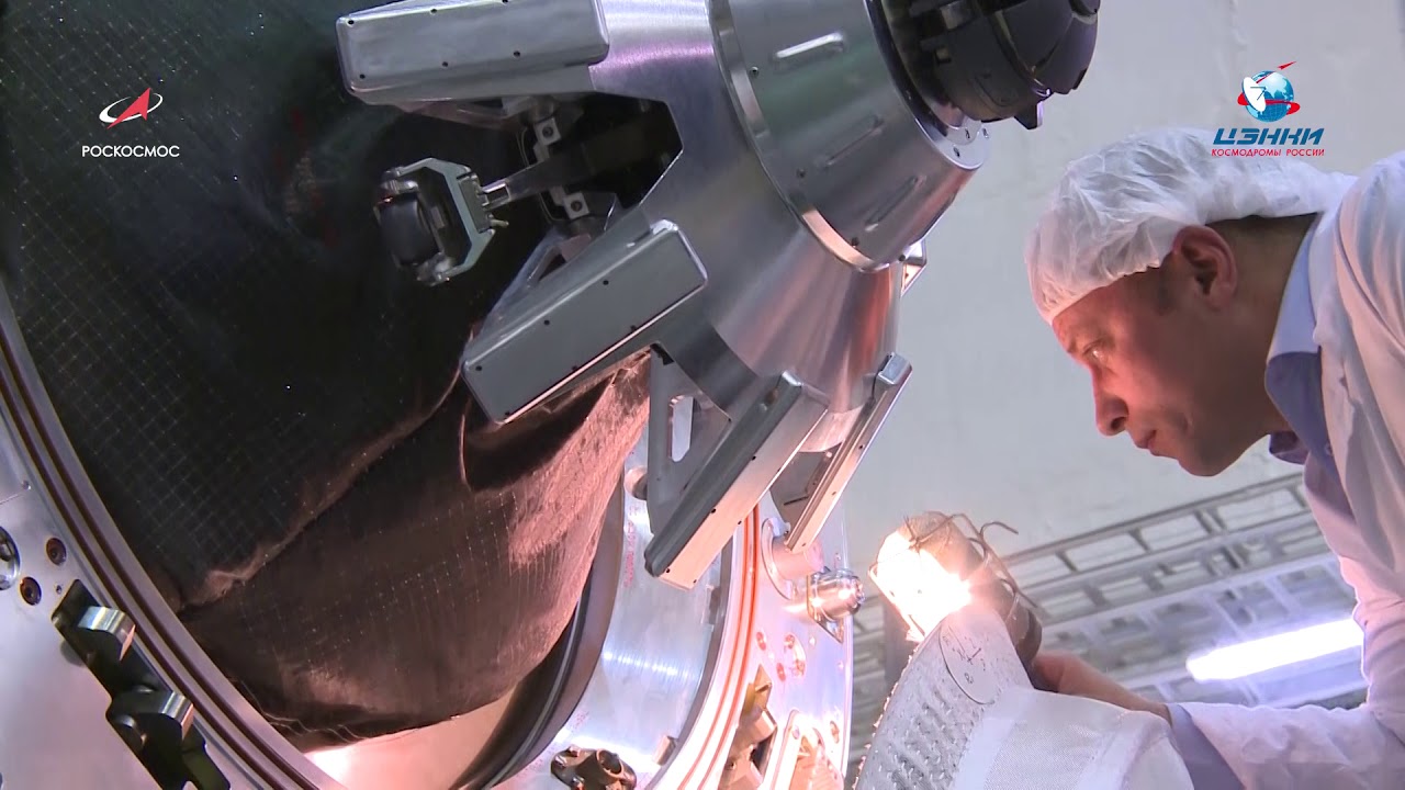 Ed eccoci nella sala di assemblaggio lanciatore presso il sito 32. Bella inquadratura che mostra l’interno dell’anello adattatore e il fondo della Progress