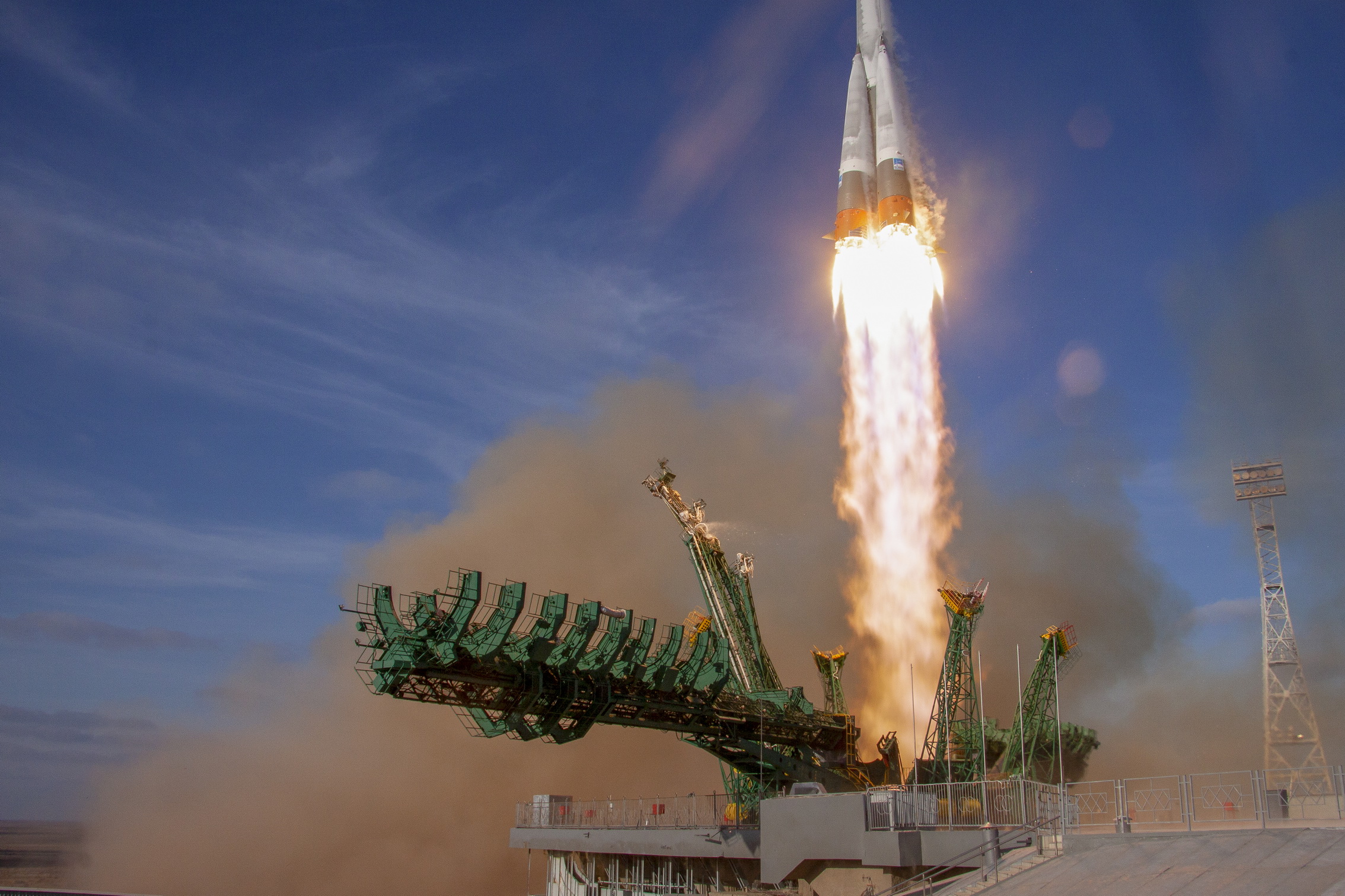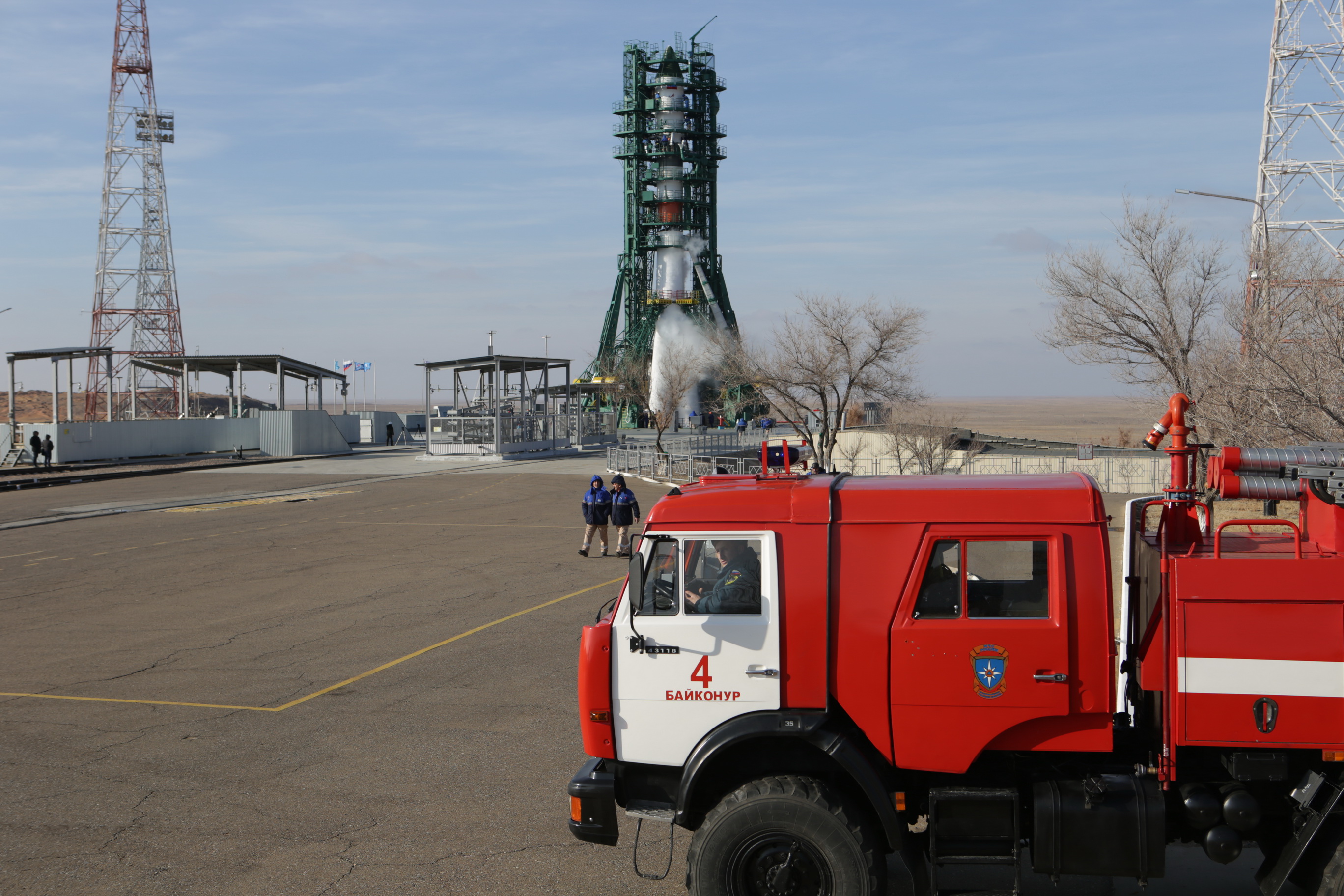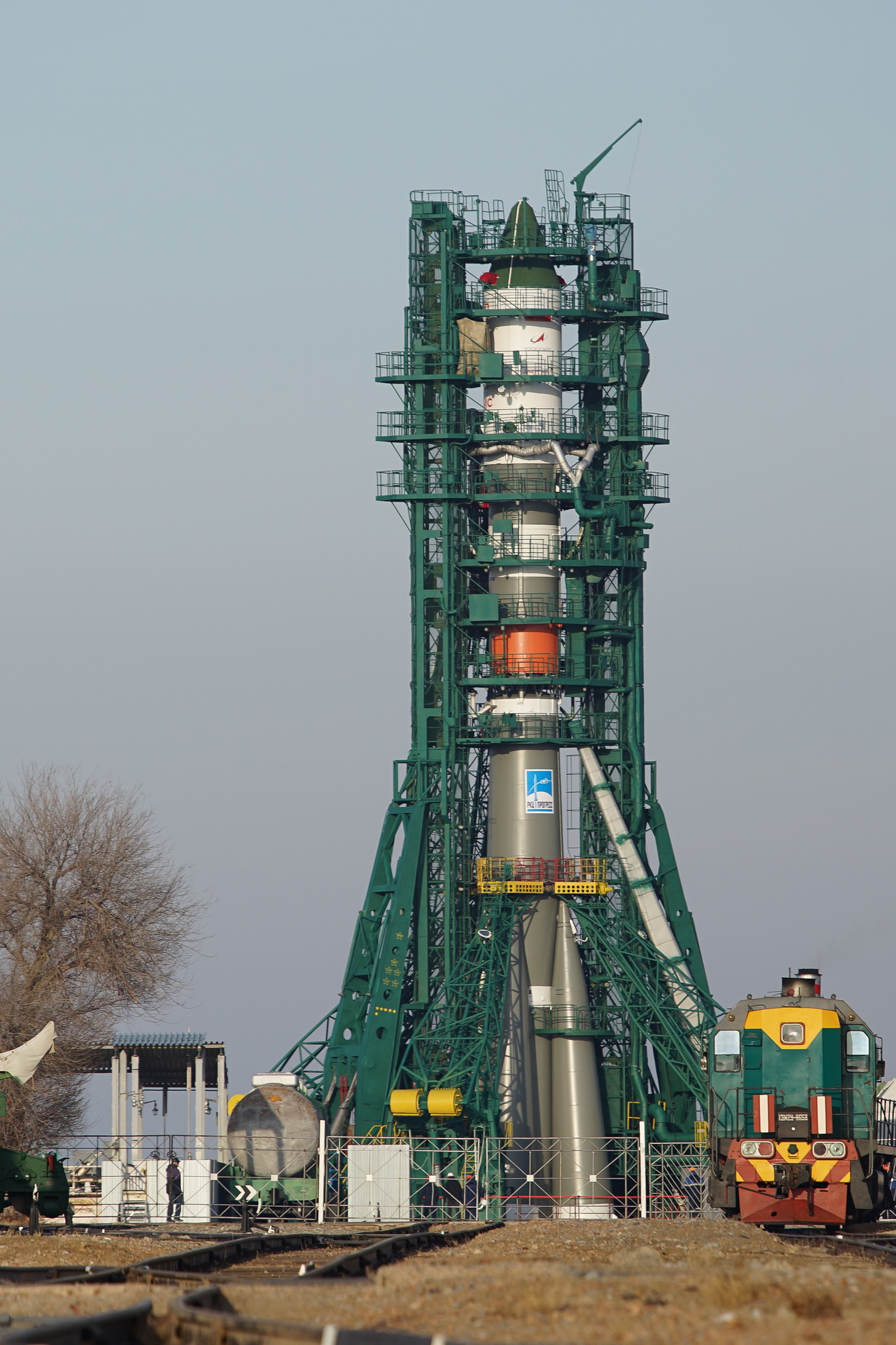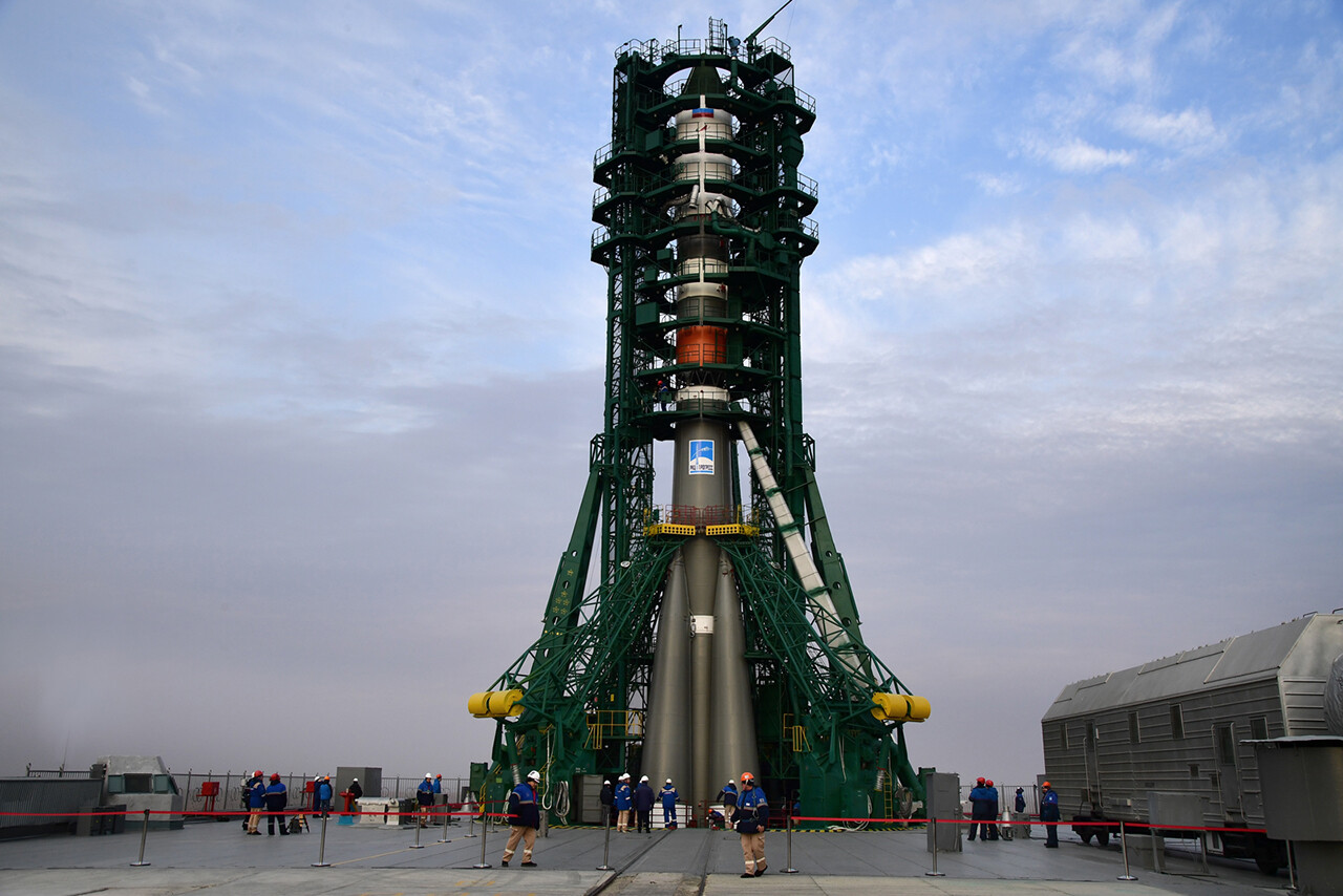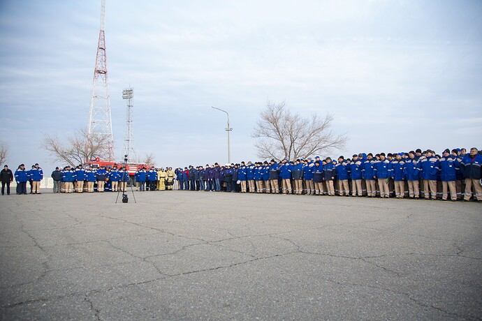 Ed eccoci nella sala di assemblaggio lanciatore presso il sito 32. Bella inquadratura che mostra l’interno dell’anello adattatore e il fondo della Progress