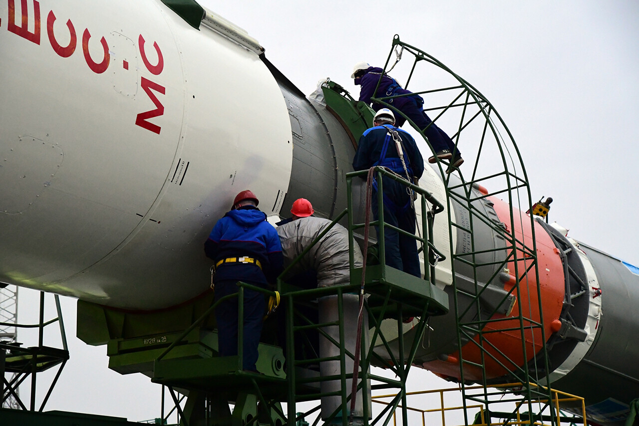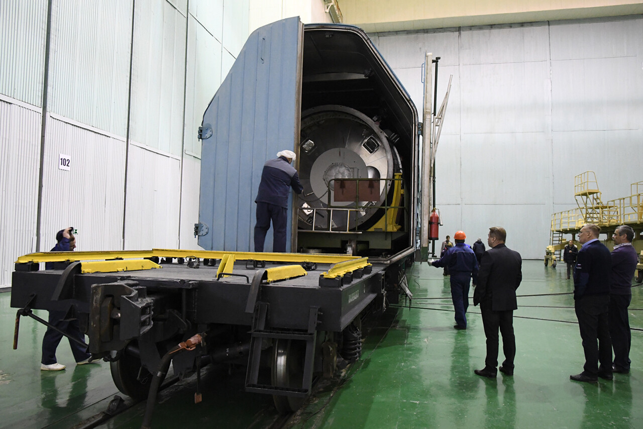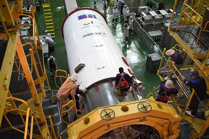 Oggi (29/11) a Bajkonur è stato il momento di inserire la Progress MS-13 del suo fairing. Per prima cosa è stata ispezionata, poi ruotata di 90° (messa in orizzontale) ed infine sono state rimosse alcune protezioni rosse.