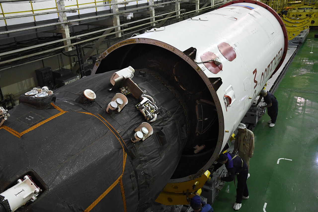 Finito il fissaggio della copertura sull’anello adattatore, la parte superiore del lanciatore è ormai completa. Adesso non resta che integrarla nei giorni successivi al razzo Sojuz 2.1a.