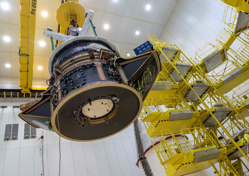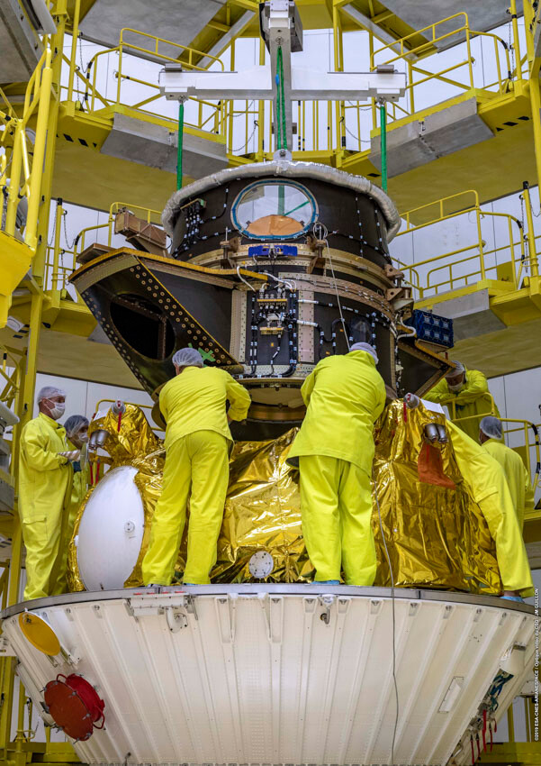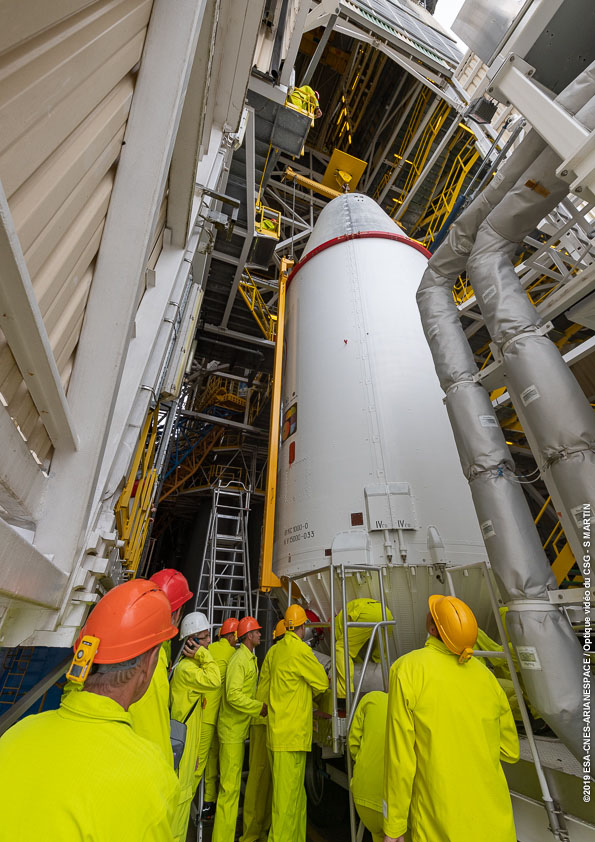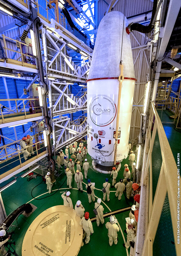 intanto CHEOPS, incapsulato nell’Souyuz Arianespace System for Auxiliary Payloads (ASAP-S) è stato posizionato sul Fregat (6/12)