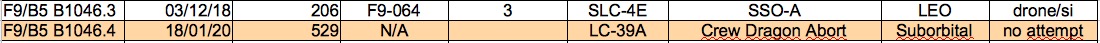 Il B1049 conferma inoltre la tendenza già evidenziata con B1048 riguardo ai giorni fra un riutilizzo ed il successivo per questi booster che hanno effettuato 4 lanci. All’aumento dei riutilizzi aumentano anche i giorni che passano fra uno e l’altro.