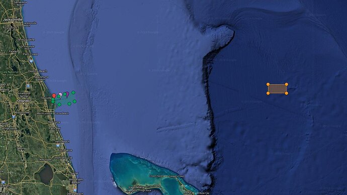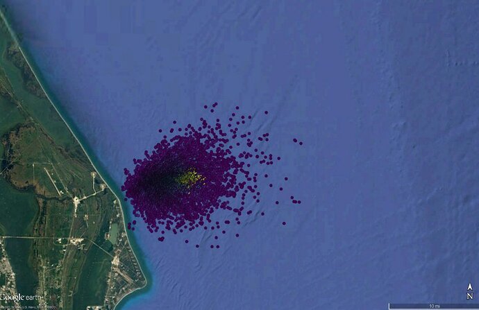 Il test sembra procedere per un lancio previsto per l’undici di gennaio alle 13 UTC (14 in Italia). La mappa indica con il puntatore rosa il centro della zona prevista per l’ammaraggio dei detriti del Falcon, con il puntatore viola la zona di splashdown della Dragon, e con il rettangolo arancione l’ eventuale splashdown the falcon in caso questo non venisse distrutto dalle forze aerodinamiche