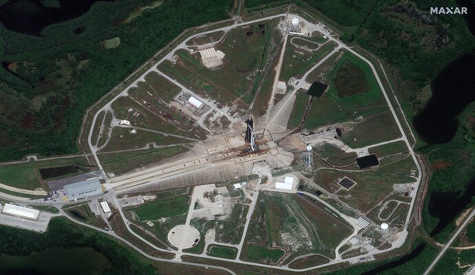 Foto satellitari della rampa, circa tre ore e mezza prima del lancio, e del lancio stesso.