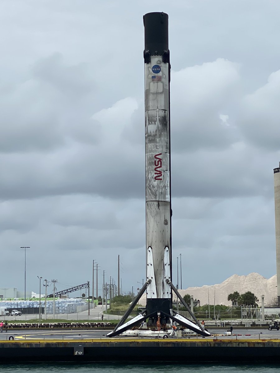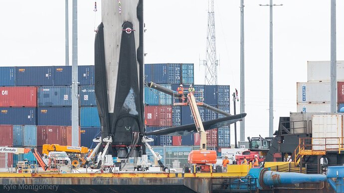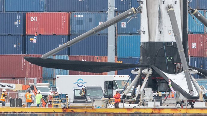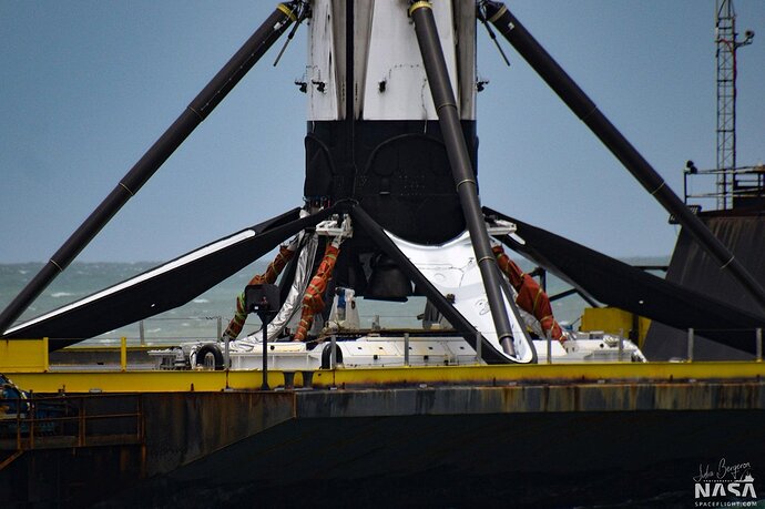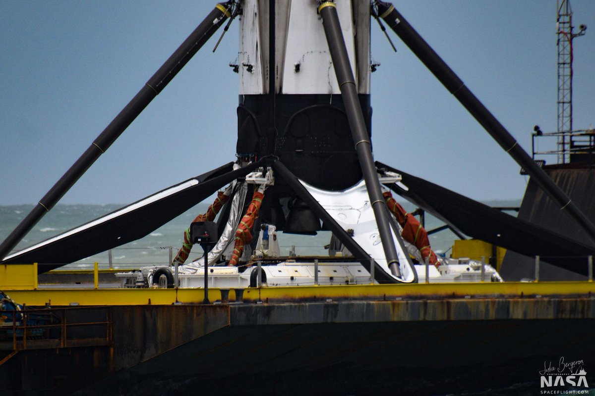 Per la prima volta le gambe del primo stadio vengono richiuse con il booster ancora sulla chiatta!