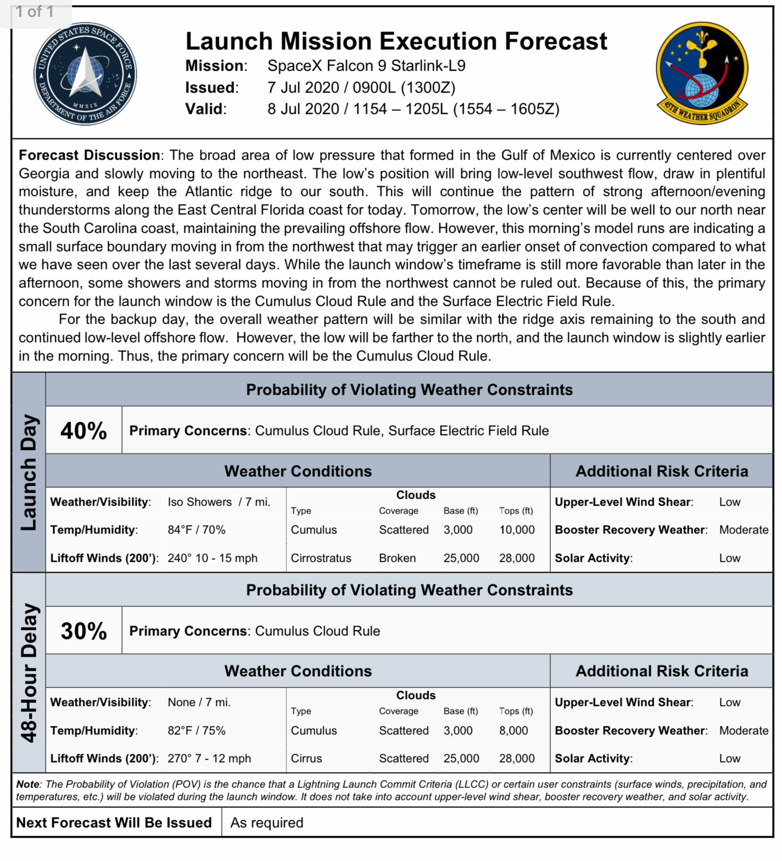 Tre parametri no go per il lancio: cumulonembi, fulmini e carica elettrica.