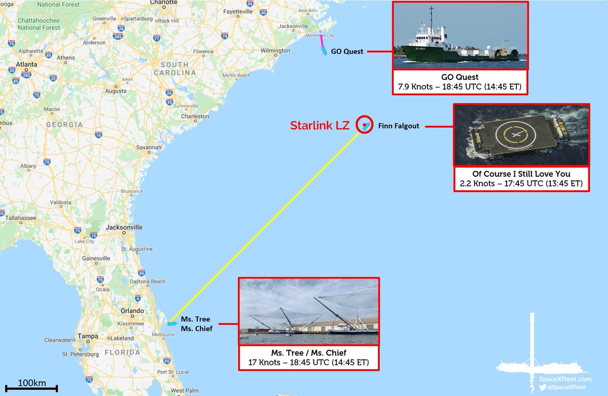 The BlackSky Global spacecraft will deploy sequentially beginning 1 hour and 1 minute after liftoff, and the Starlink satellites will deploy approximately 1 hour and 32 minutes after liftoff. Starlink satellites will be deployed in a circular orbit, as was done on the first through fourth Starlink missions.
