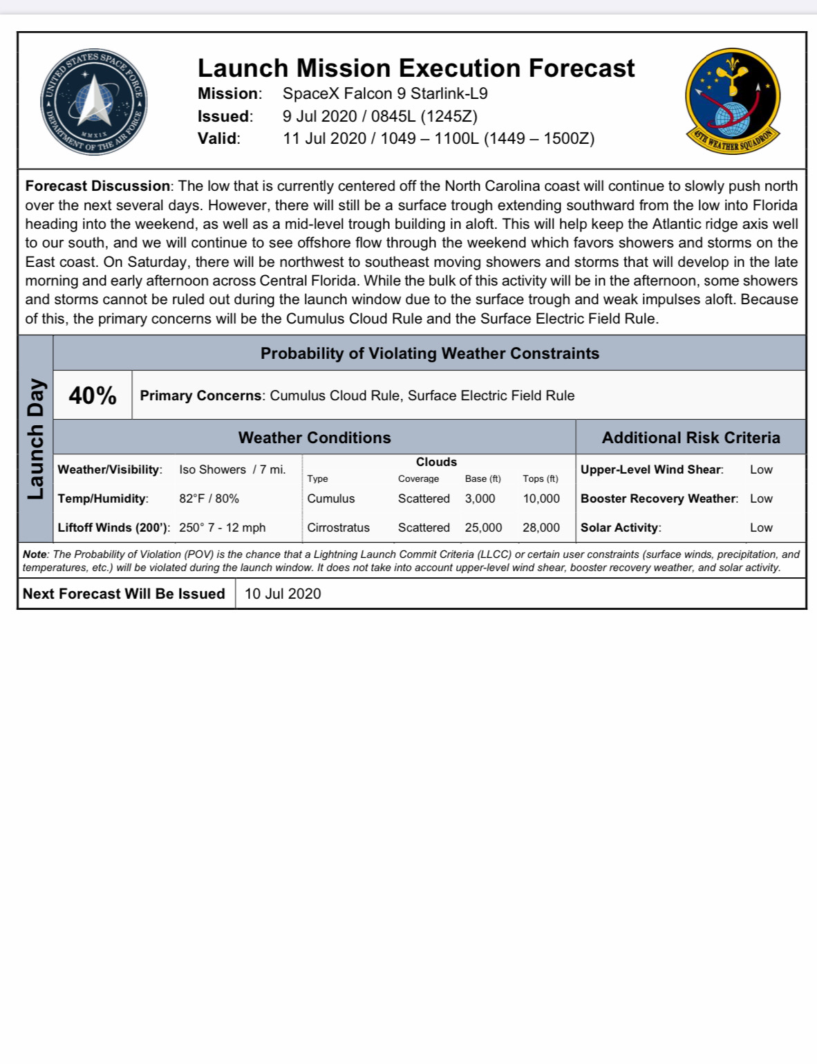 Officials cited thick clouds and the potential for triggered lightning being the reason for a possibledelay.
