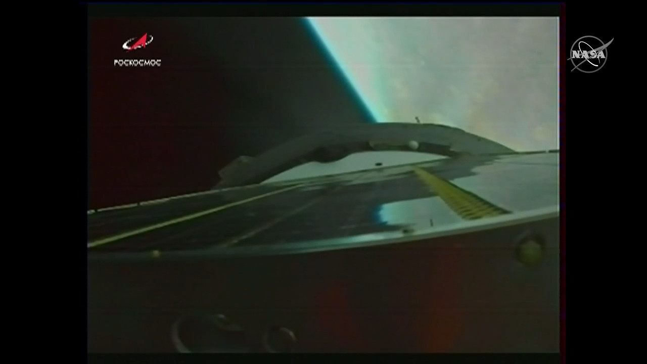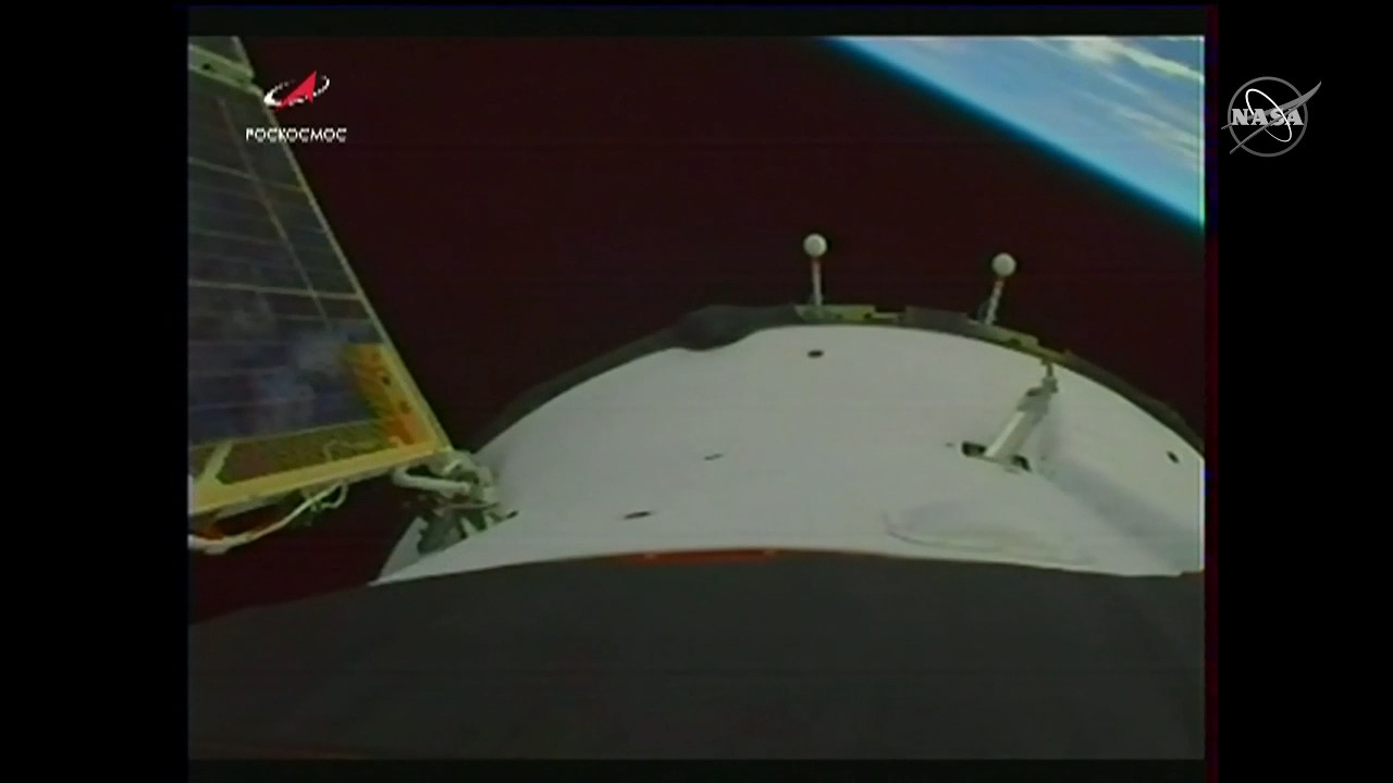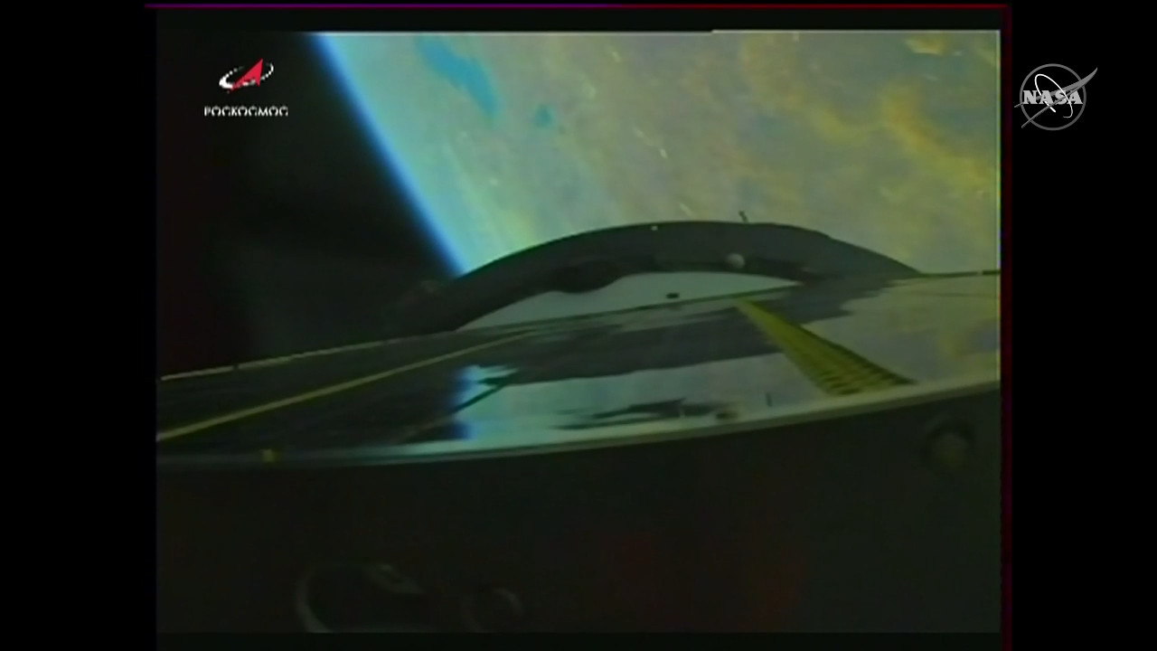 Arrivano le prime immagini dalla Sojuz in avvicinamento alla ISS.