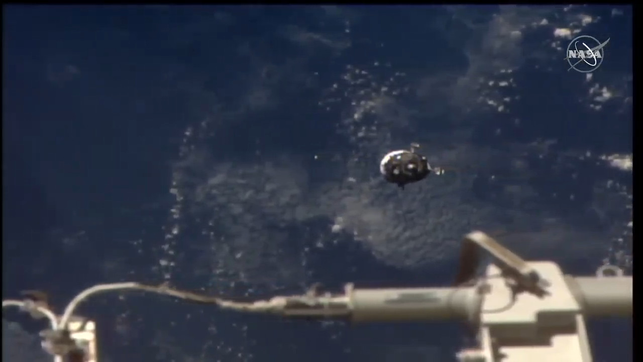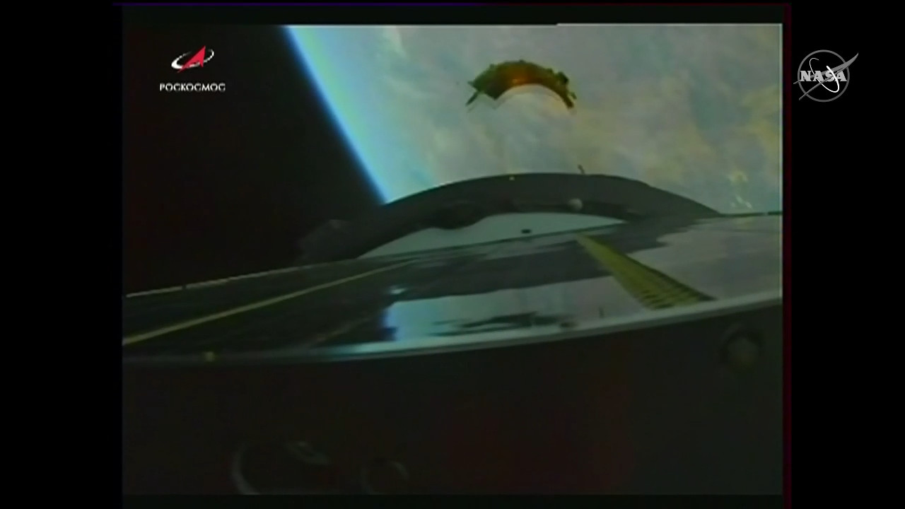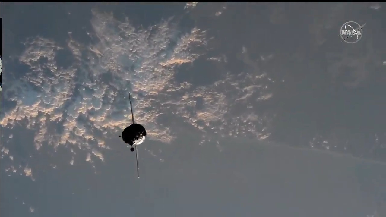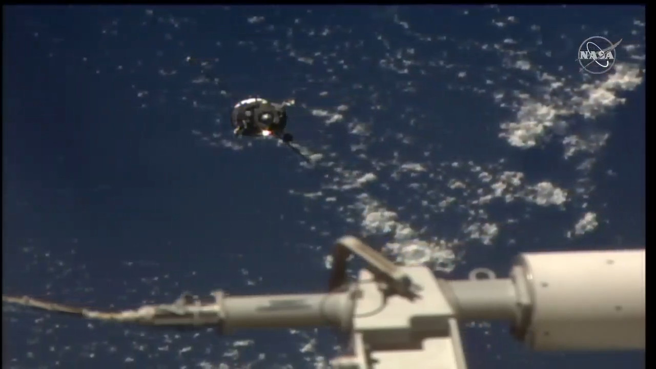Arrivano le prime immagini dalla Sojuz in avvicinamento alla ISS.