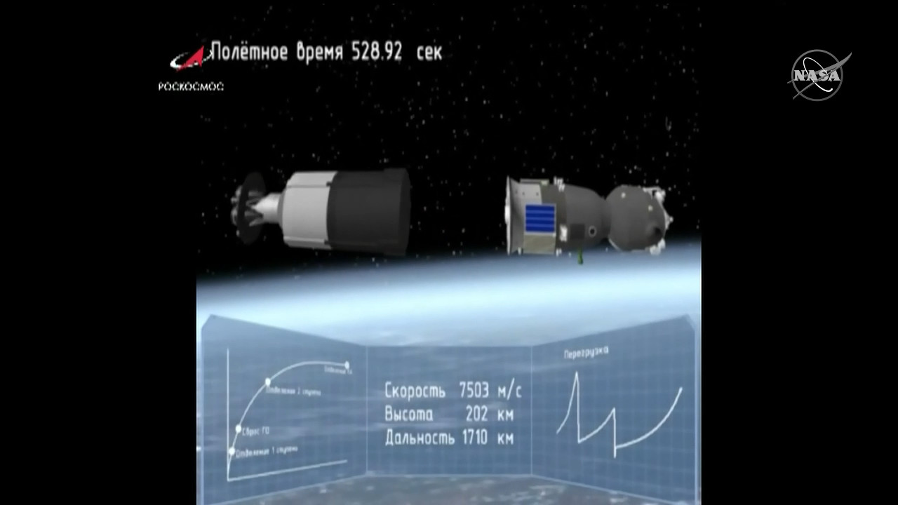 La Sojuz è ora libera dal lanciatore e in orbita.