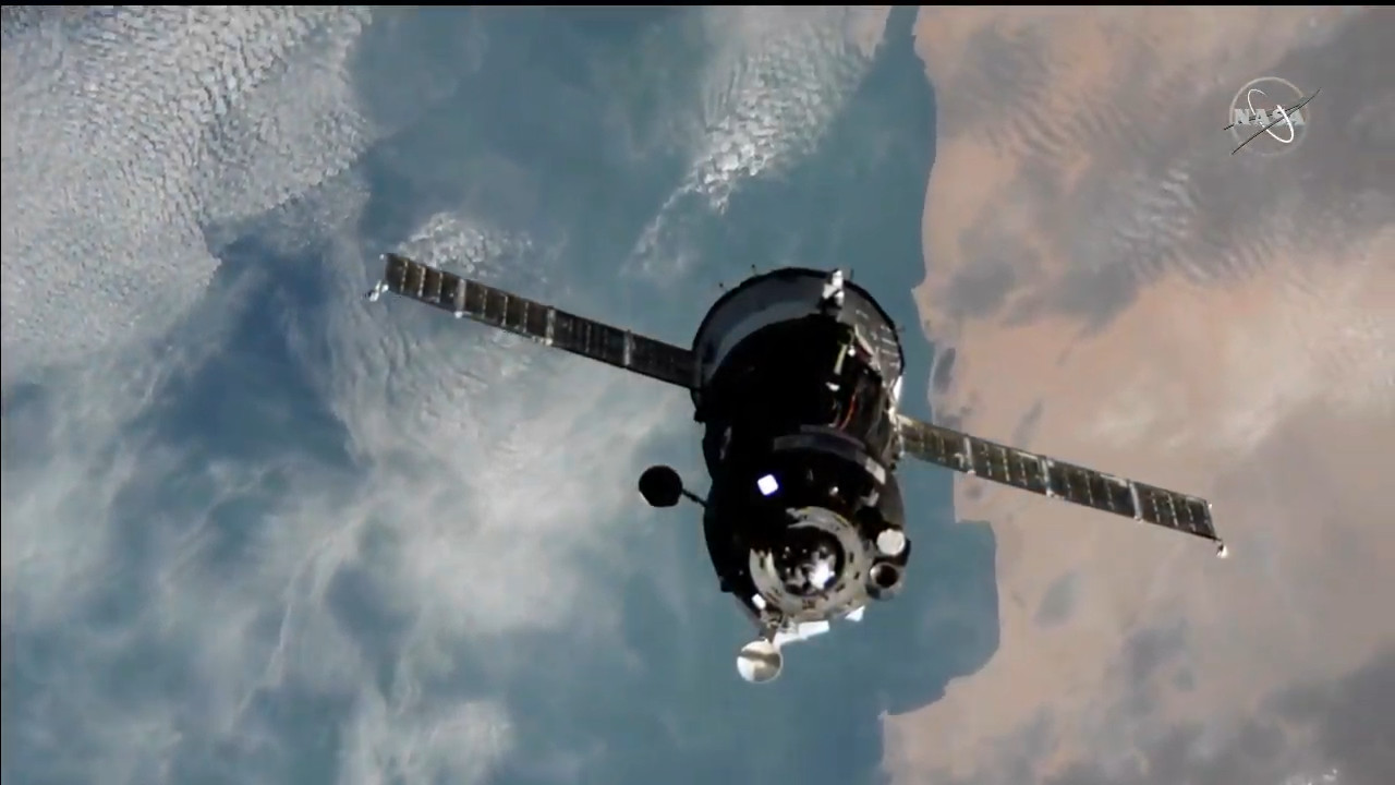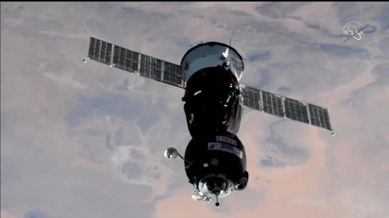 La Sojuz MS-17 è ormai a pochi metri dal suo obiettivo, il docking target del modulo Rassvet. La manovra è sempre gestita dal computer di bordo Kurs, con l’equipaggio pronto a prendere il controllo in caso di necessità.