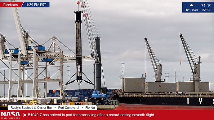 Il primo stadio lascia il porto in vista di un eventuale ottavo lancio.