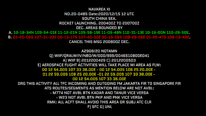 La mappa con le zone di ricaduta, tutto in direzione sud a causa della scelta dell’orbita, SSO. Mi pare di ricordare che sia il primo volo in orbita polare da Wenchang(ho solo un dubbio sul LM-7, controllerò).