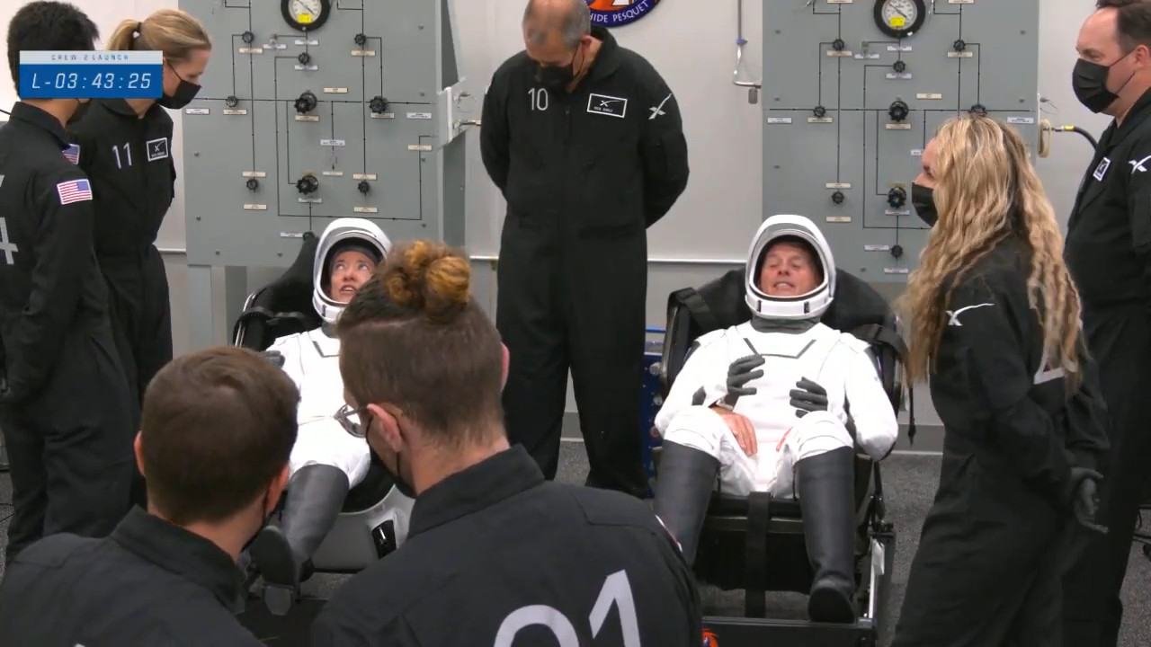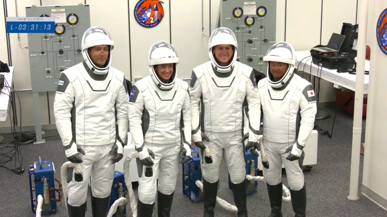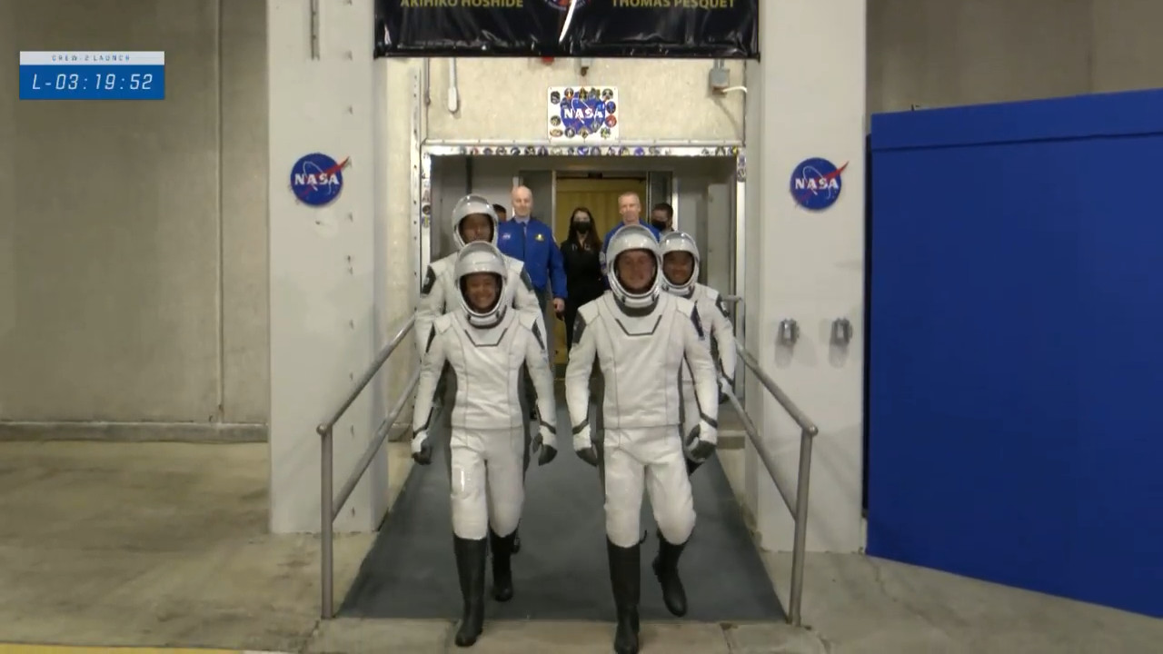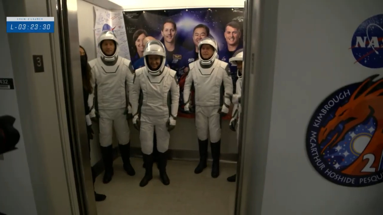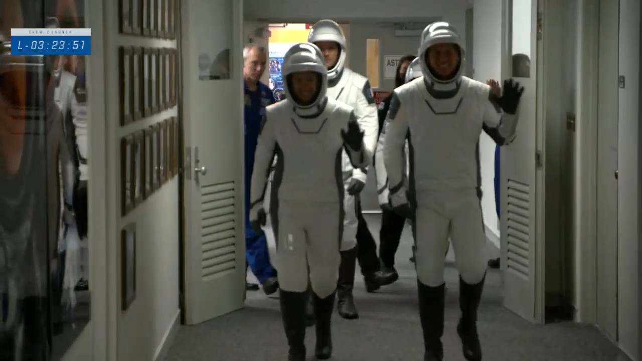 Il quartetto di astronauti è già da qualche tempo nella fase di vestizione, e i test alle tute sono stati da poco completati con successo
