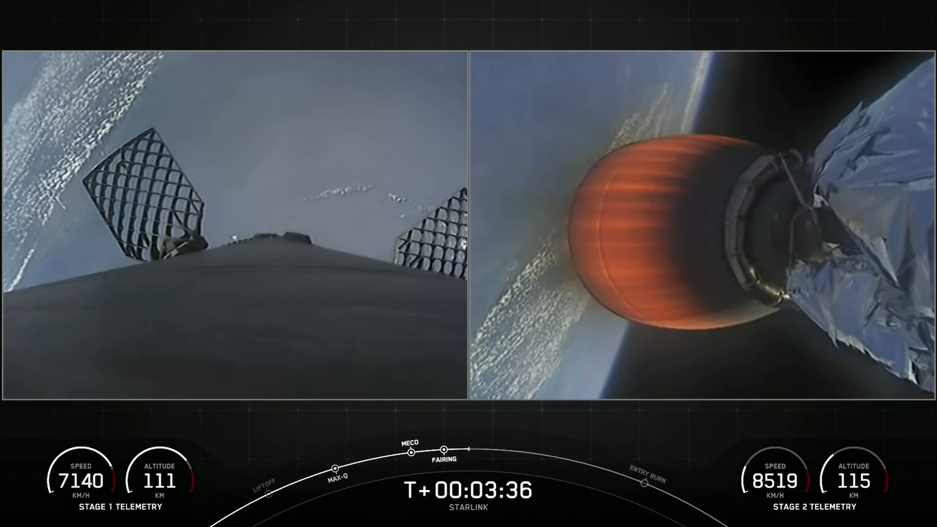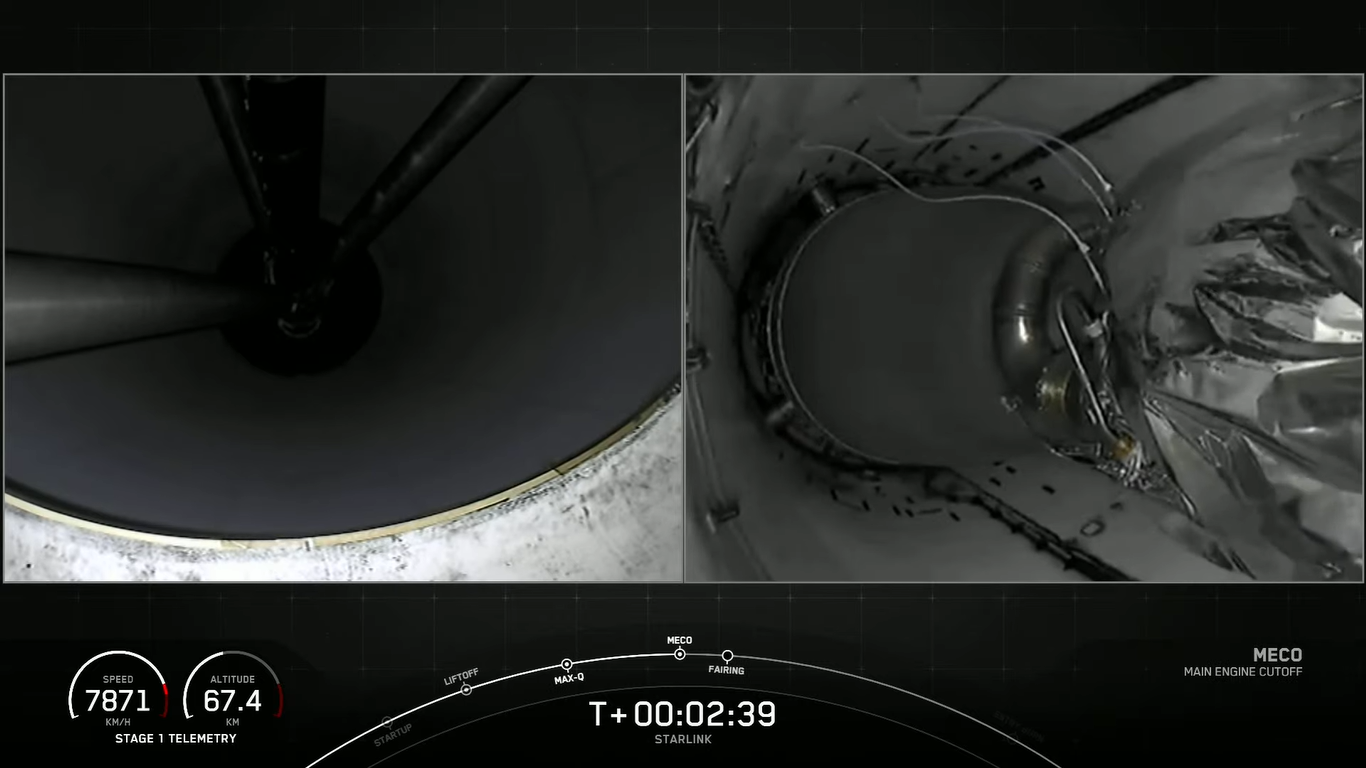 MECO, accensione del 2nd Stage e separazione delle fairing avvenuta!