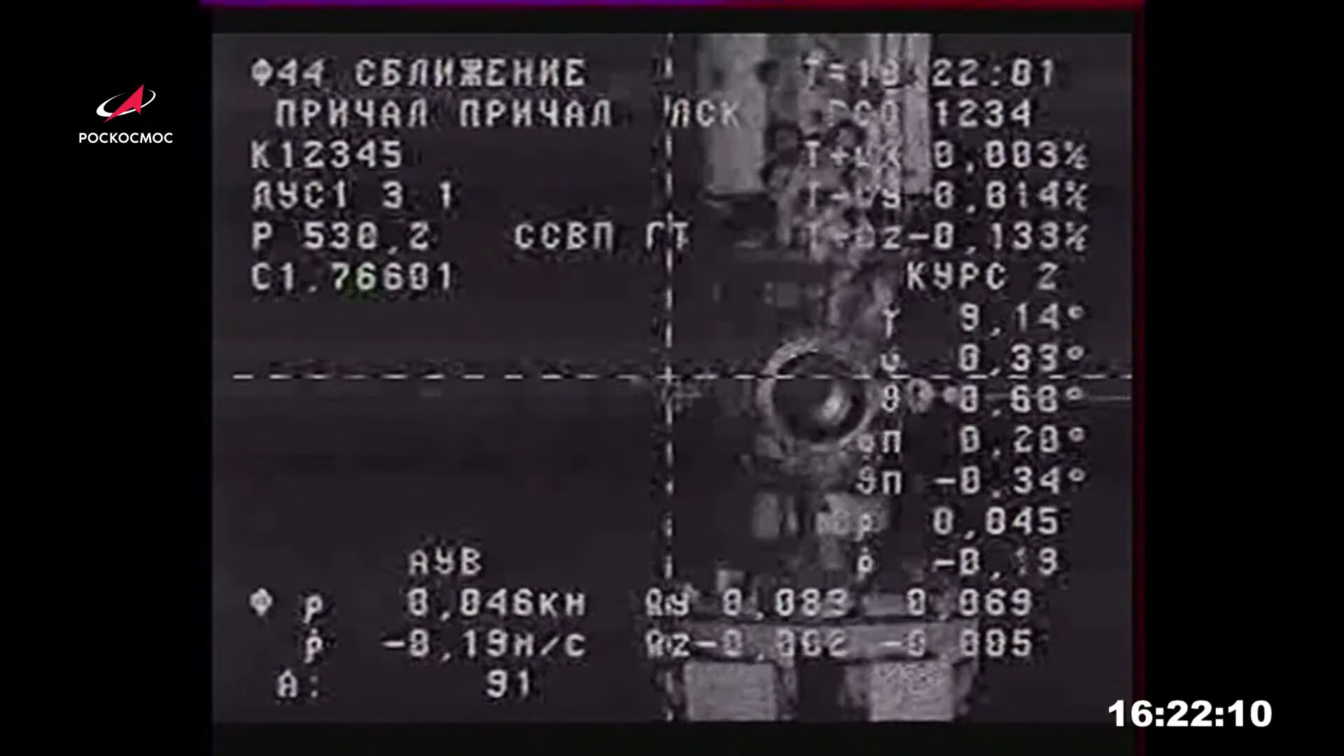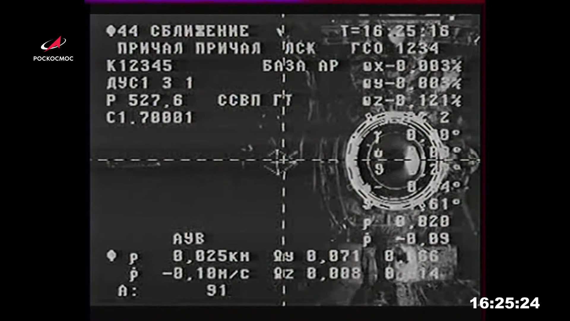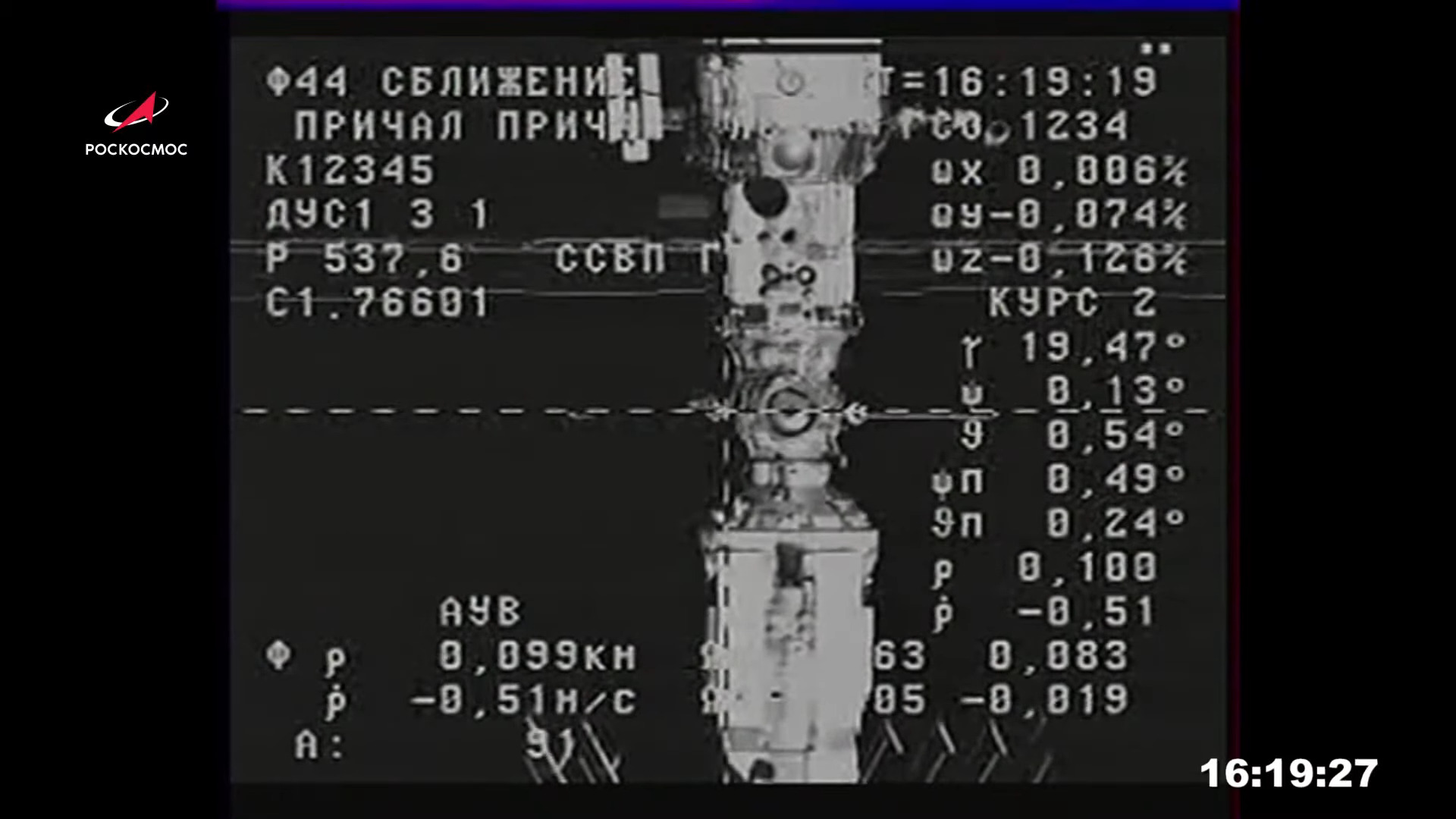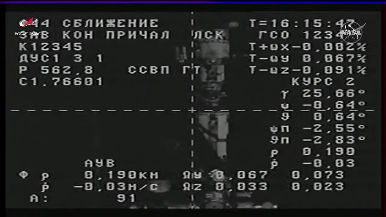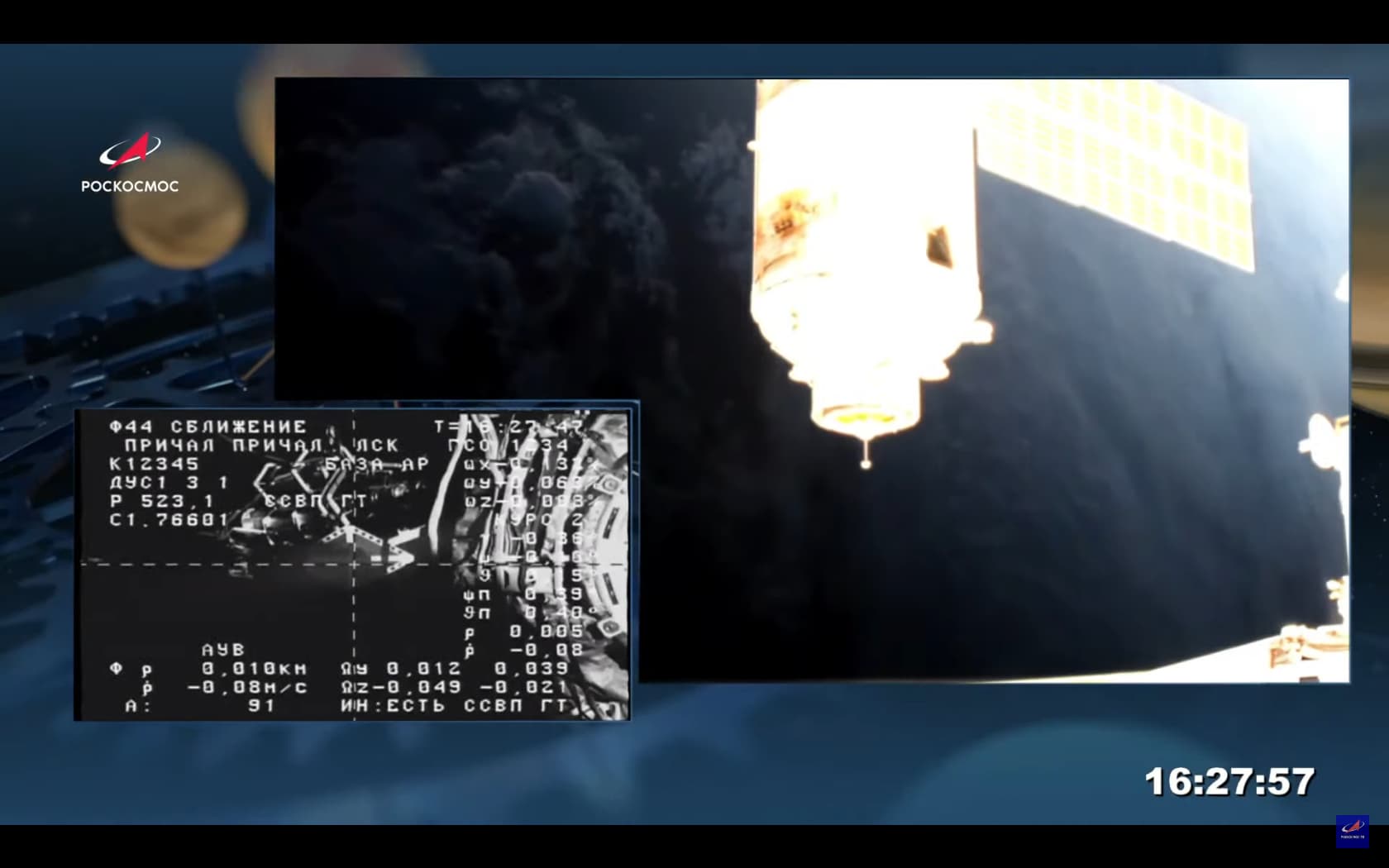 Il commentatore NASA ha confermato che negli ultimi metri câera qualche problemino di allineamento, e quindi sono passati al TORU per lâattracco manuale di Novitskiy.