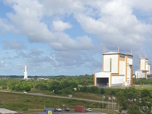 Il satellite, completamente rifornito, è stato issato sull’adattatore e trasportato sull’Ariane 5 che lo porterà nello spazio.