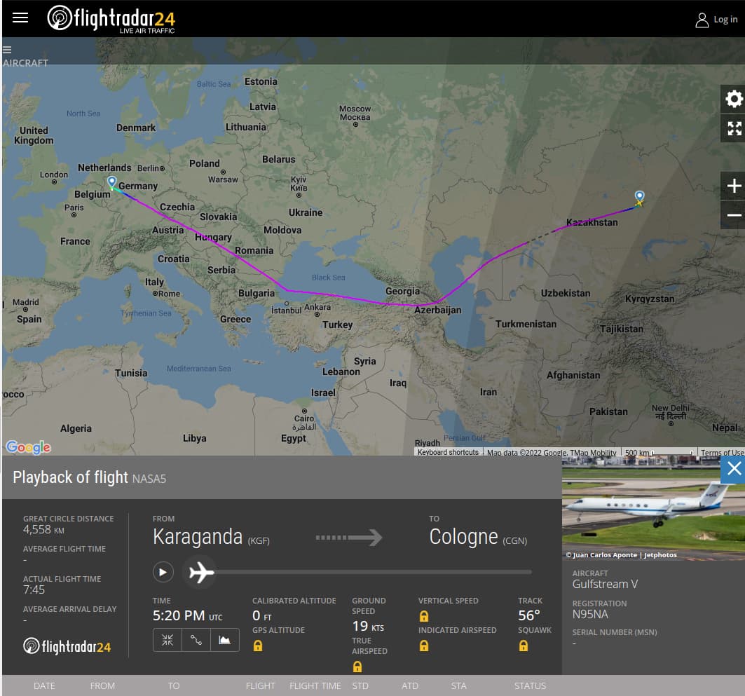 Una ripercussione minore ma curiosa del conflitto in corso in Ucraina è il percorso dell’aereo inviato da NASA per riportare in USA Mark Vande Hei che è da poco atterrato a bordo dellla Sojuz MS-19.