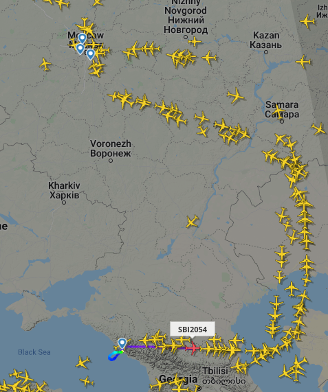 In realtà nemmeno i voli russi possono passare sopra quel particolare territorio russo in questo periodo, non è una questione del particolare volo dell’astronauta, ma di una situazione generale. Questo è uno screenshot che ho preso a inizio mese da flightradar24: