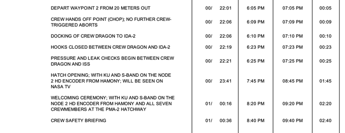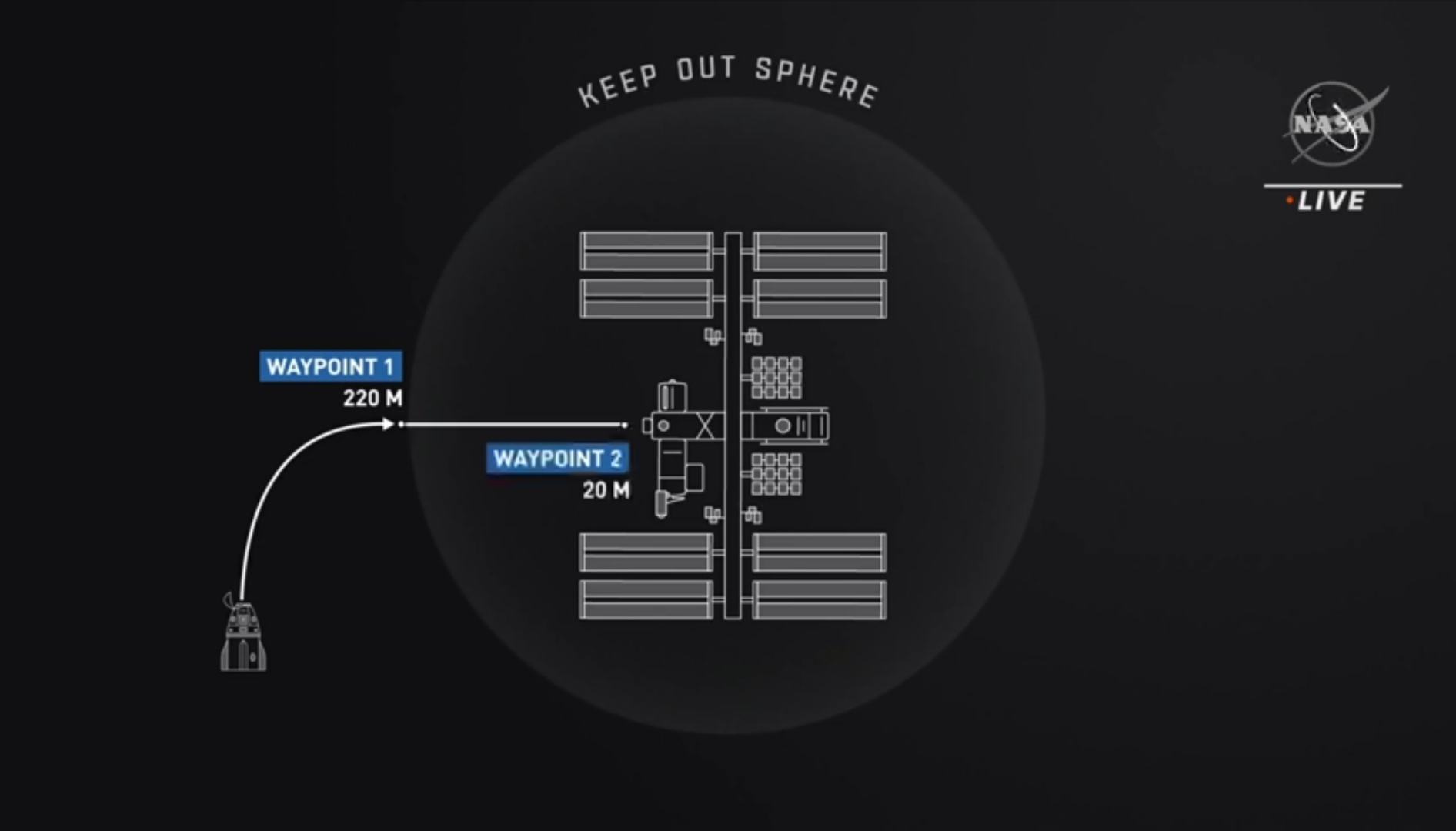 Dall’audio dello stream NASA un dettaglio interessante: in caso di problemi al docking, la Dragon può attendere fino a venti ore per ulteriori tentativi, mantenendosi in prossimità della ISS.