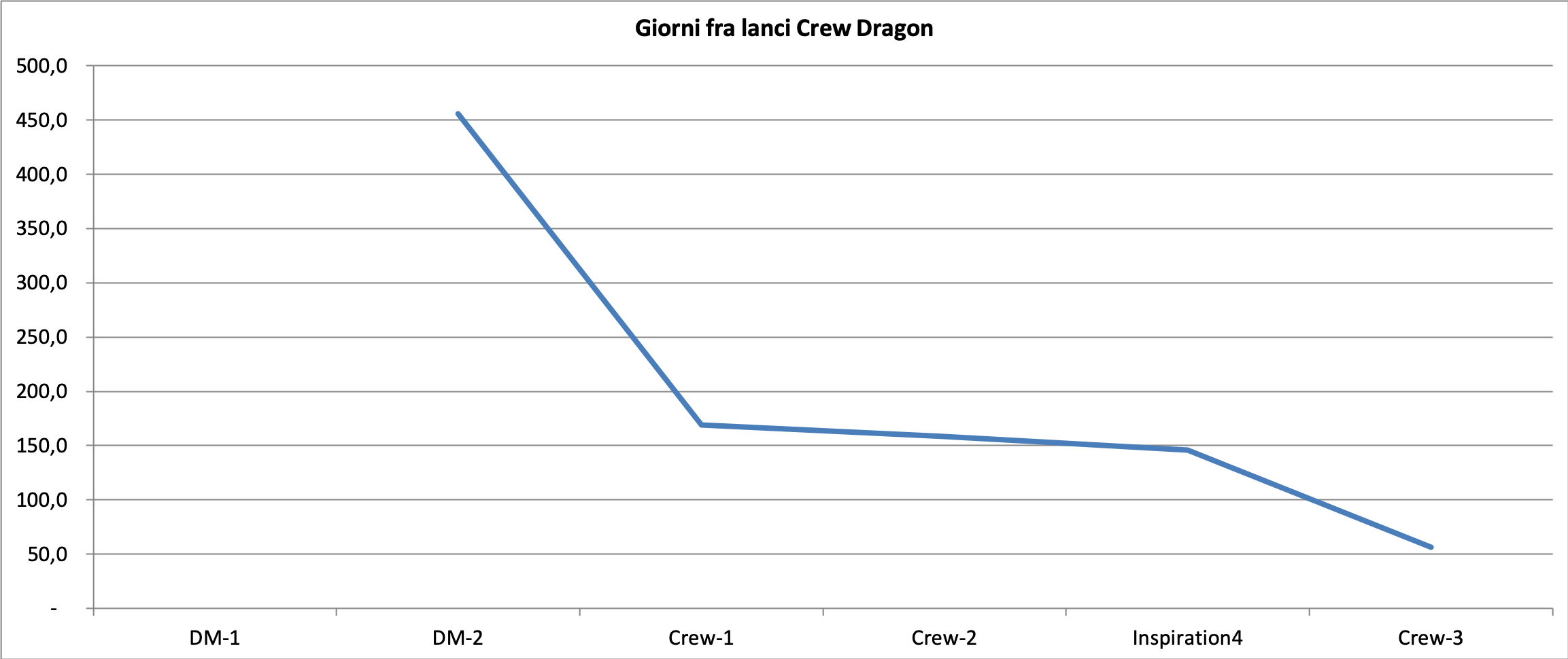 Secondo lancio di una Crew Dragon nel giro di 56 giorni. Battuto il precedente record di 146 giorni (fra Crew-2 e Inspiration4).