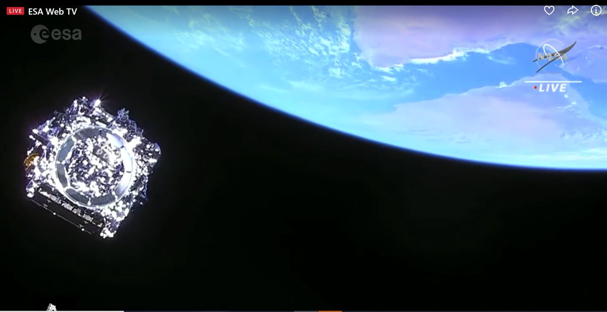 Completata correttamente la prima accensione per la correzione di rotta. La prima di tre manovre è necessaria perchè un’immissione in orbitacon velocità troppo elevata avrebbe esposto direttamente le ottiche al sole, bruciandole o danneggiandole.