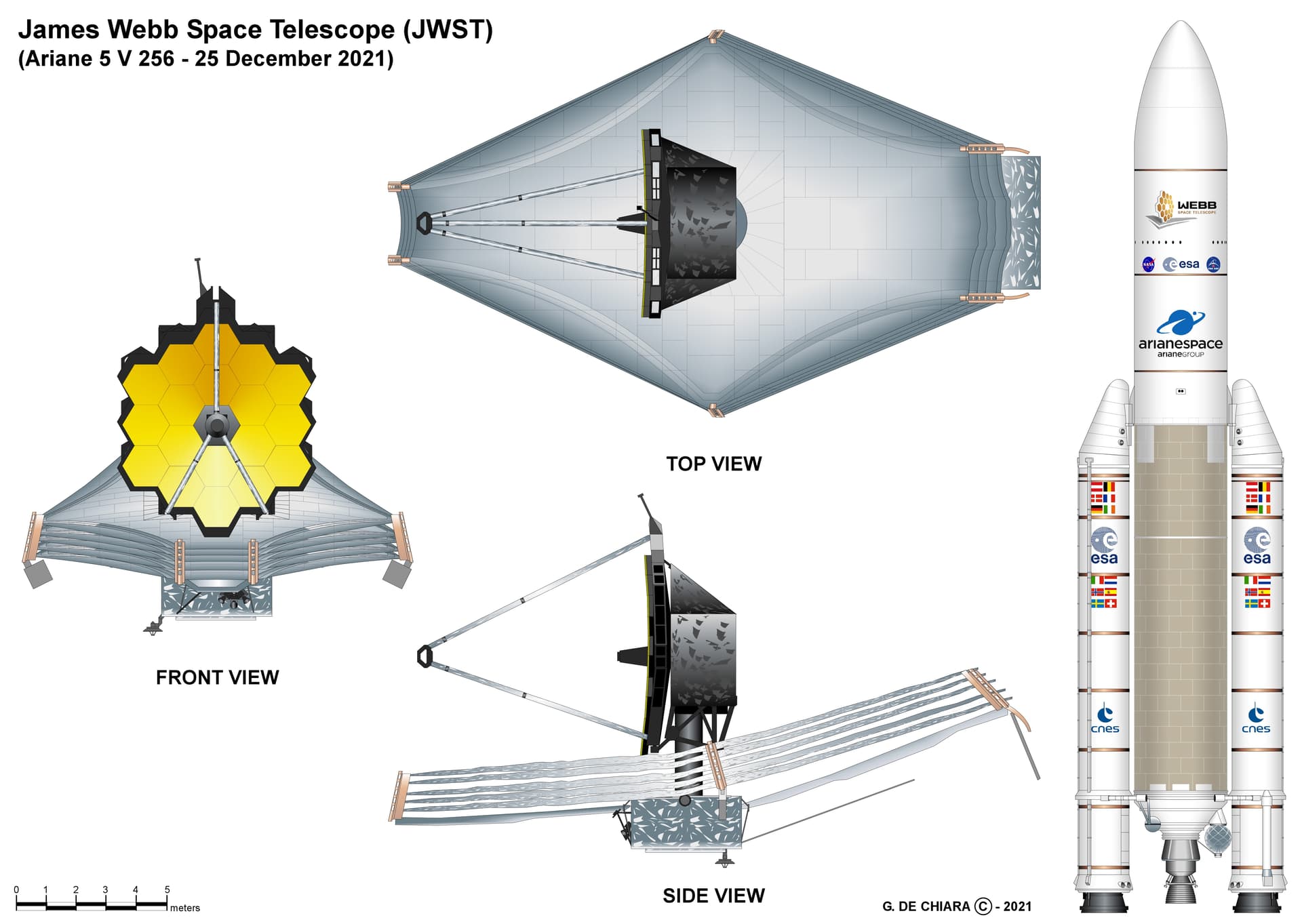 Per celebrare degnamente questo storico (ed è dire poco) ed emozionante evento, posto un paio di miei disegni dedicati allo JWST.