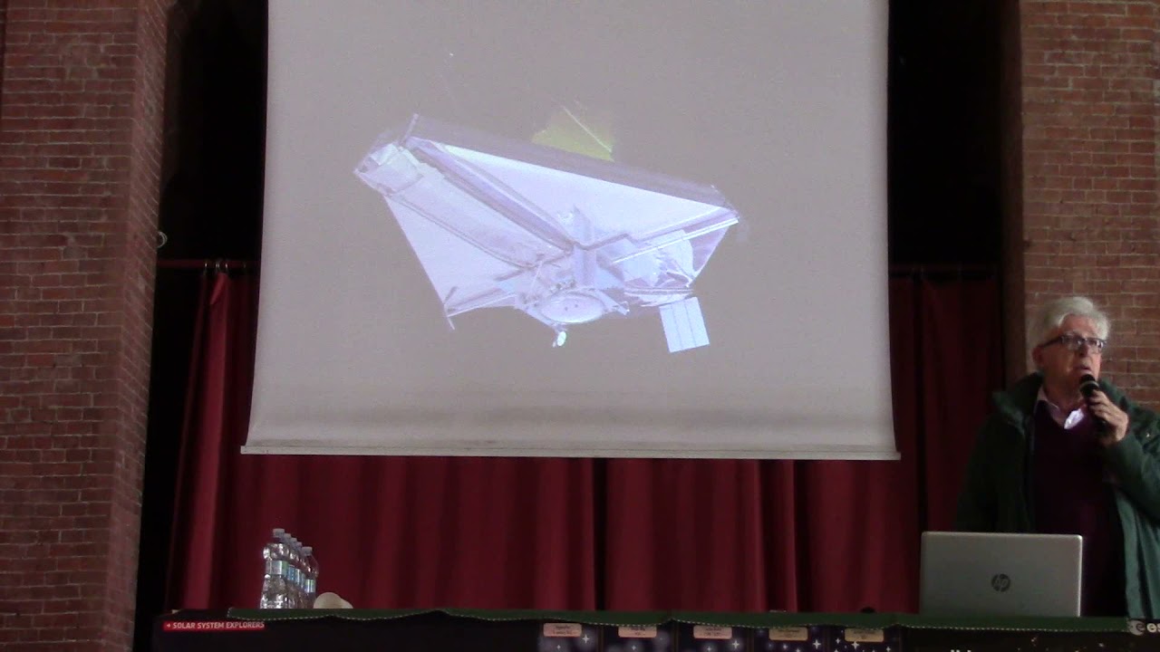 Purtroppo l’audio di sala fa pena, e mi è scappato un grosso errore: il punto lagrangiano L2 fa parte, ovviamente, del sistema Terra-Sole, e non Terra-Luna.