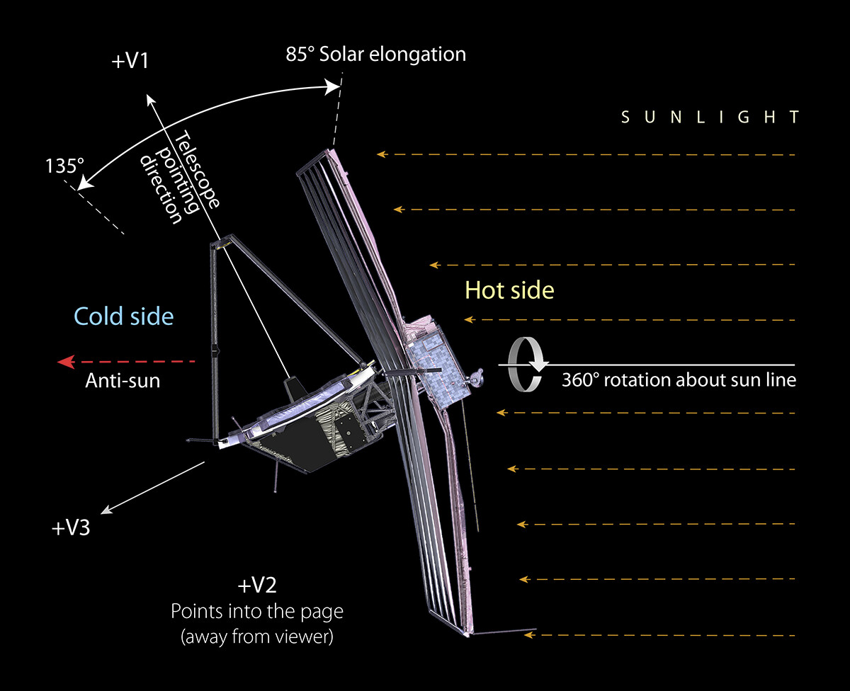 no, bisogna spostare tutto il telescopio. Esiste un “field of regard” che è la zona puntabile in un dato momento. Vedi https://jwst-docs.stsci.edu/jwst-observatory-characteristics/jwst-observatory-coordinate-system-and-field-of-regard