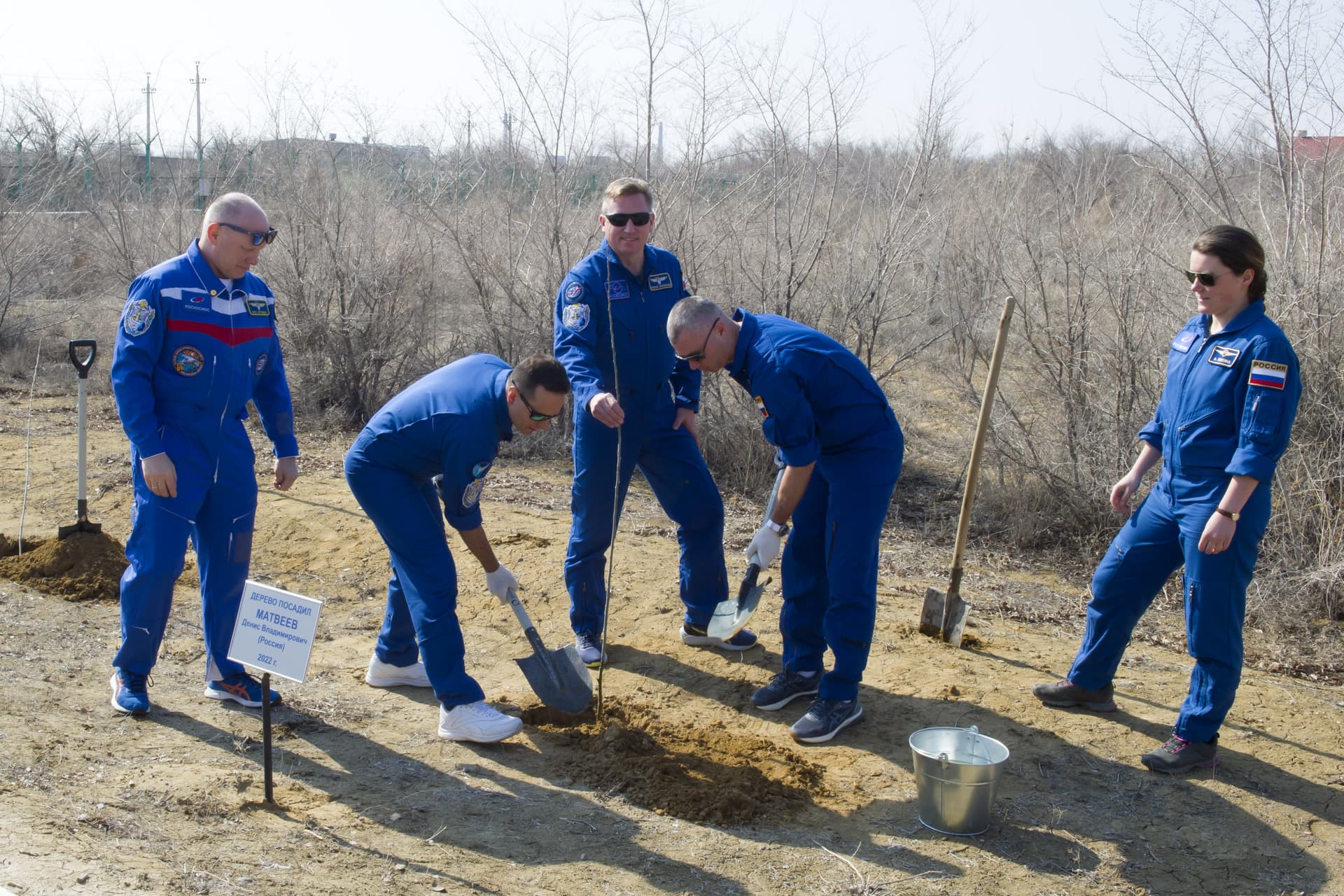 Il rispetto delle tradizioni vuole anche che i due cosmonauti al primo volo piantino il loro alberello lungo il viale dei Cosmonauti. Mateev: