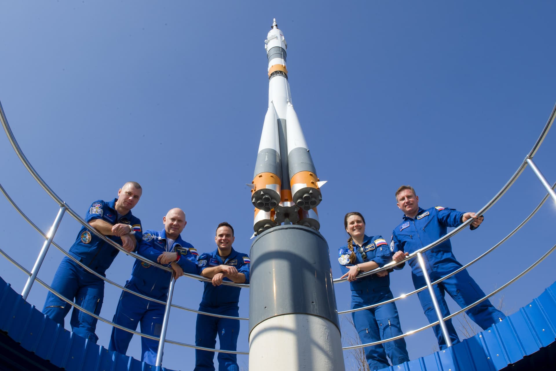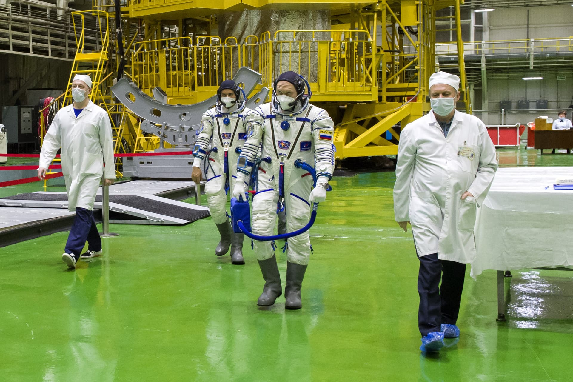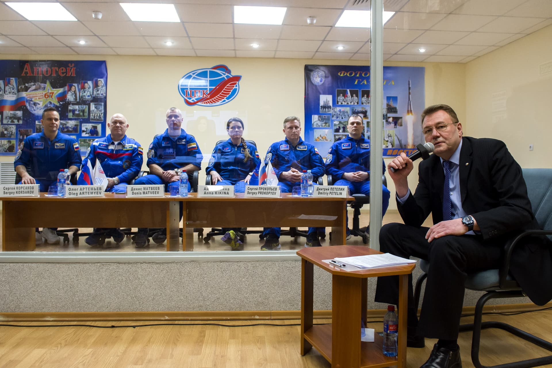 Il 1° marzo eccoli al cosmodromo. Briefing (dov’finito Dmitrij Petelin?):