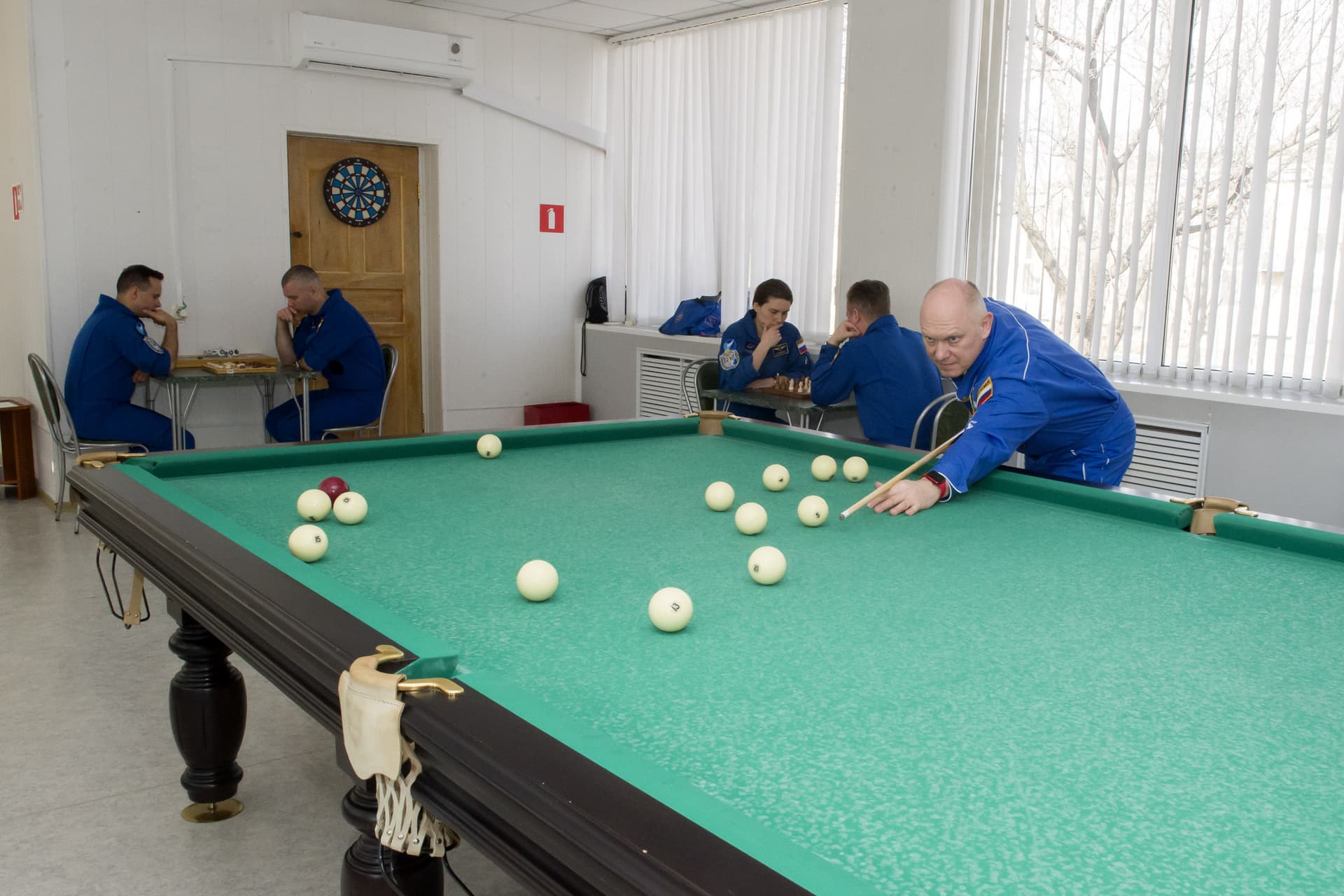 Ogni giorno, sotto la supervisione di medici, i cosmonauti si allenano su un tapis roulant, ciclette; lavorano su simulatori di peso e fanno allenamento fisico. Dedicano il loro tempo libero a giocare a scacchi, dama, ping pong, freccette e biliardo.