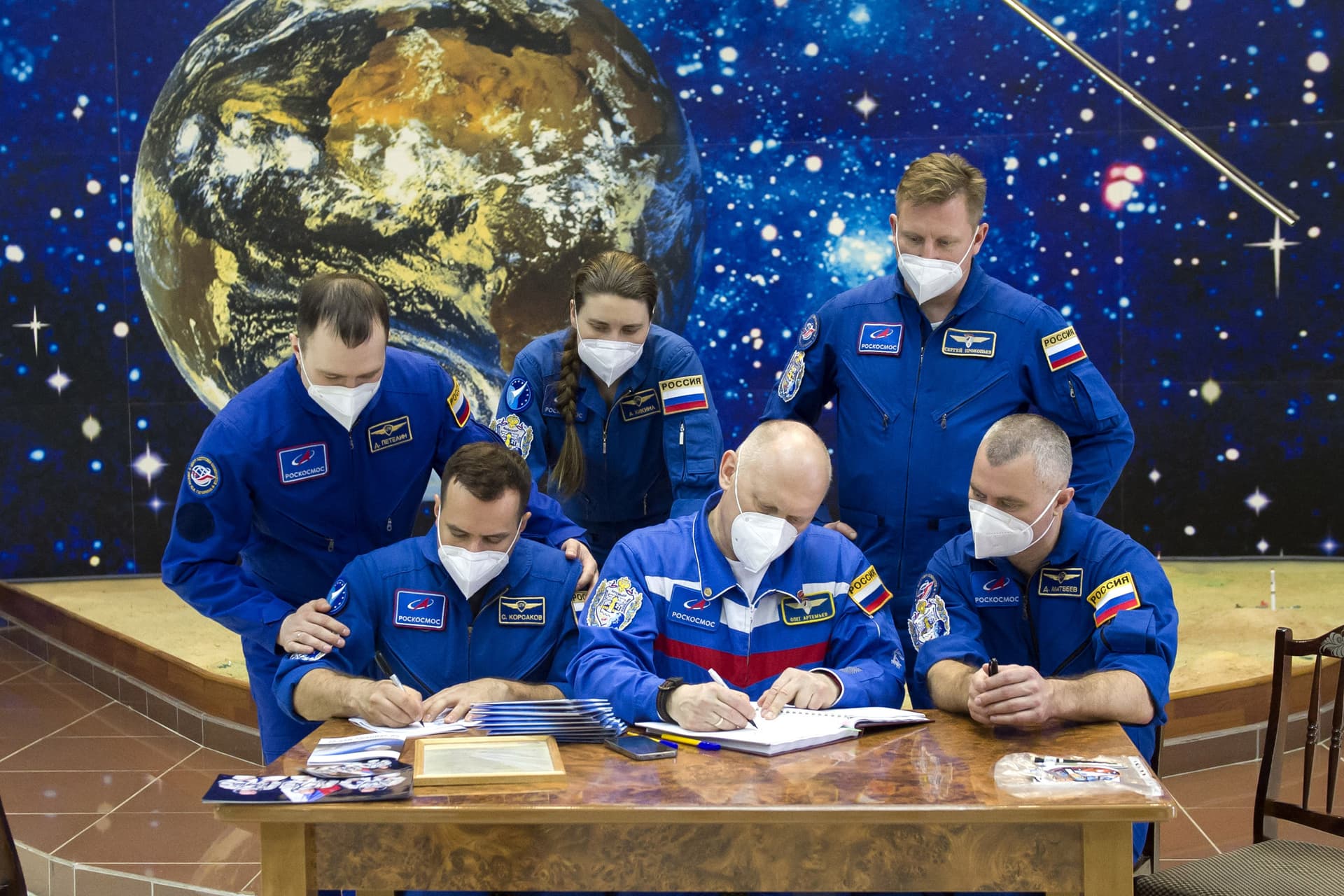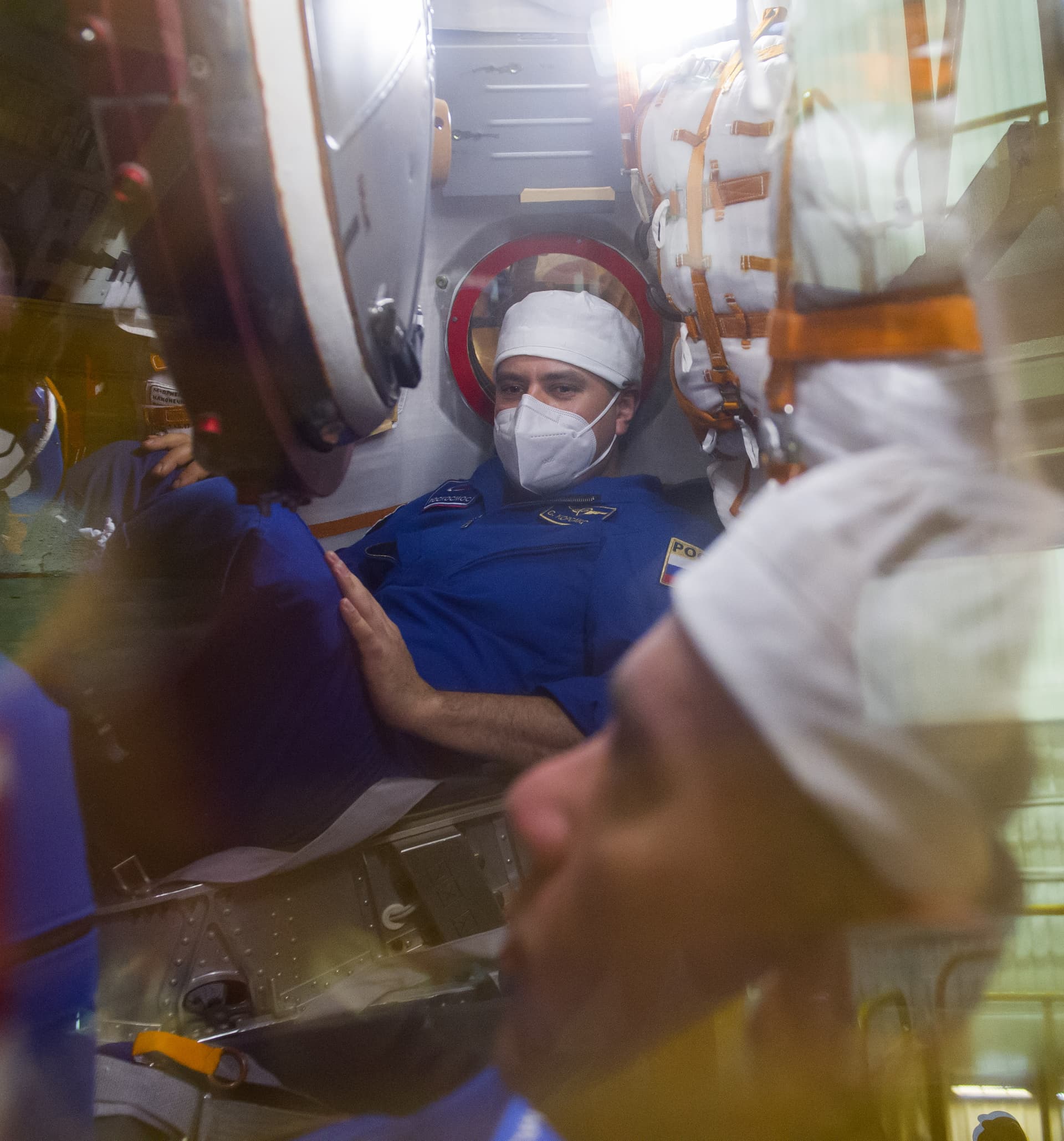 Il 12 marzo gli equipaggi si sono recati al Cosmodromo per ispezionare la configurazione finale della Soyuz MS-21 ormai inserita nel fairing. Briefing.