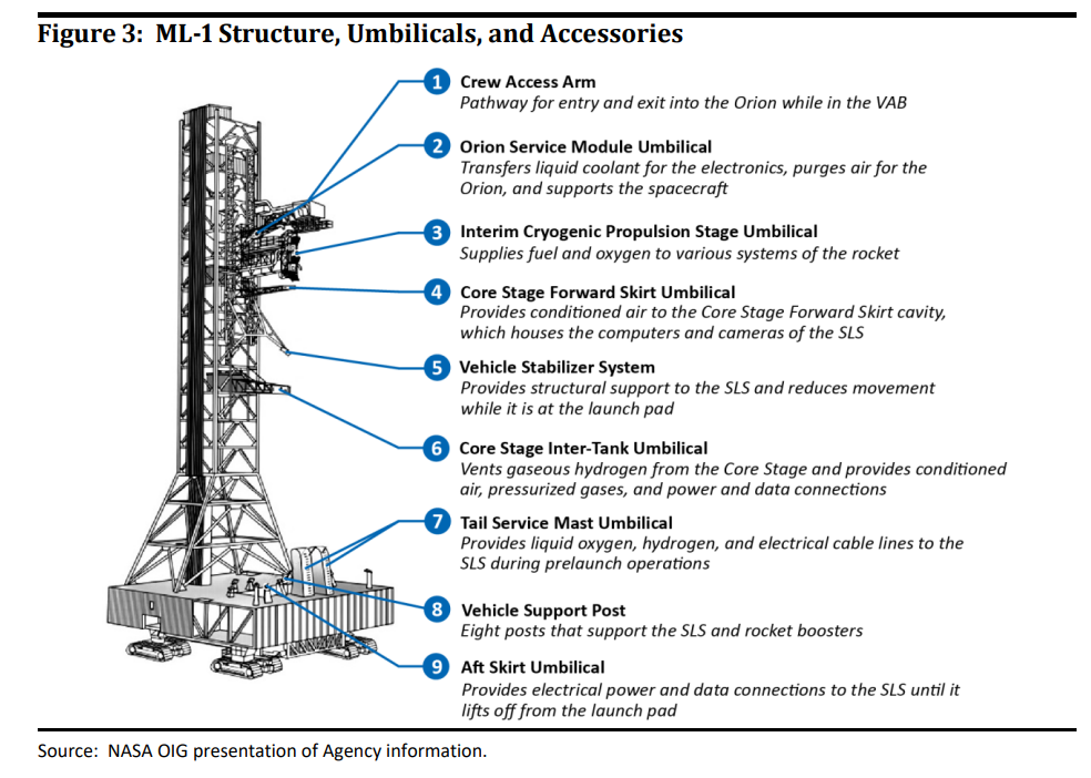 L’immagine sottostante è tratta dal rapporto del supervisore della NASA sullo sviluppo delle piattaforme di lancio mobili, o Mobile Launch Platform, pubblicato il 17 marzo 2020. Qui potete trovare il documento originale.