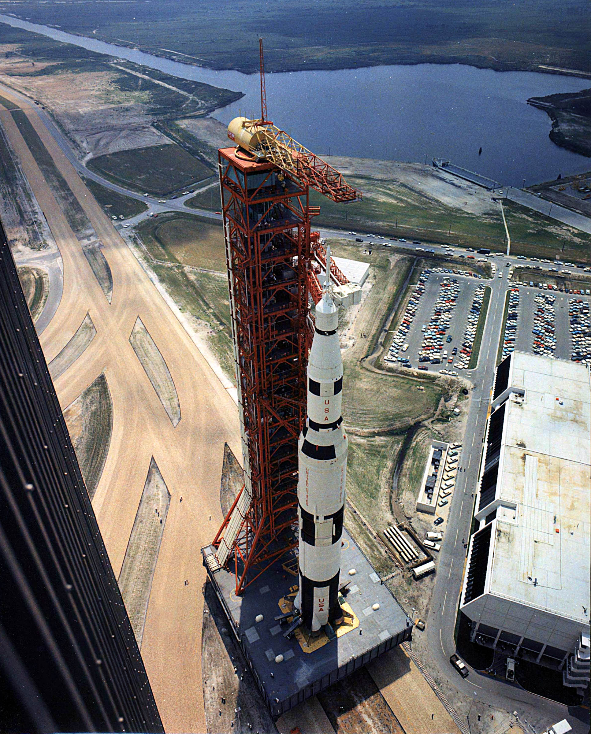 Da questa foto si nota bene l’ubicazione del TSMU: a sinistra di SLS, con i tubi che si connettono alla sezione motori - bianca - del razzo.