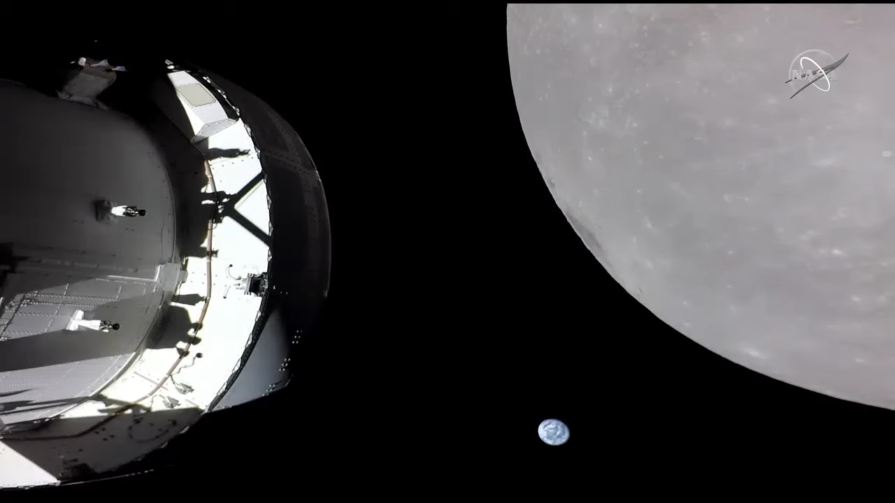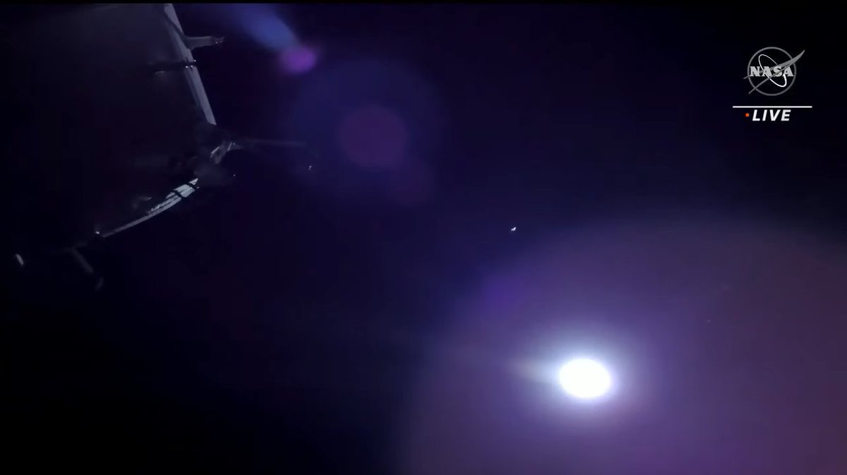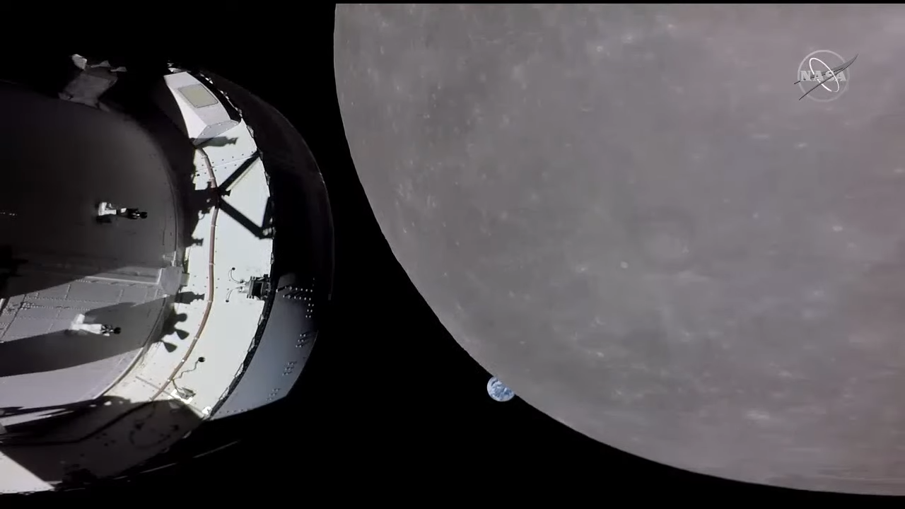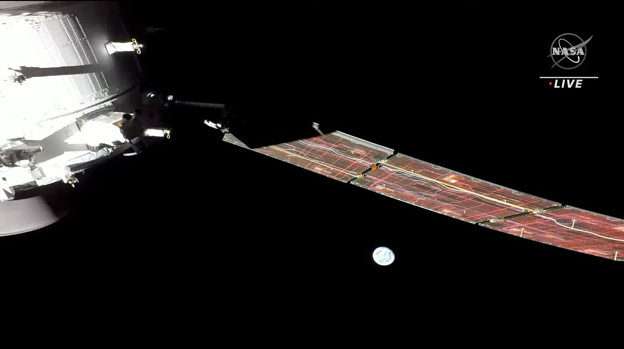 NASA TV apre il live con una visuale in tempo reale da Orion.