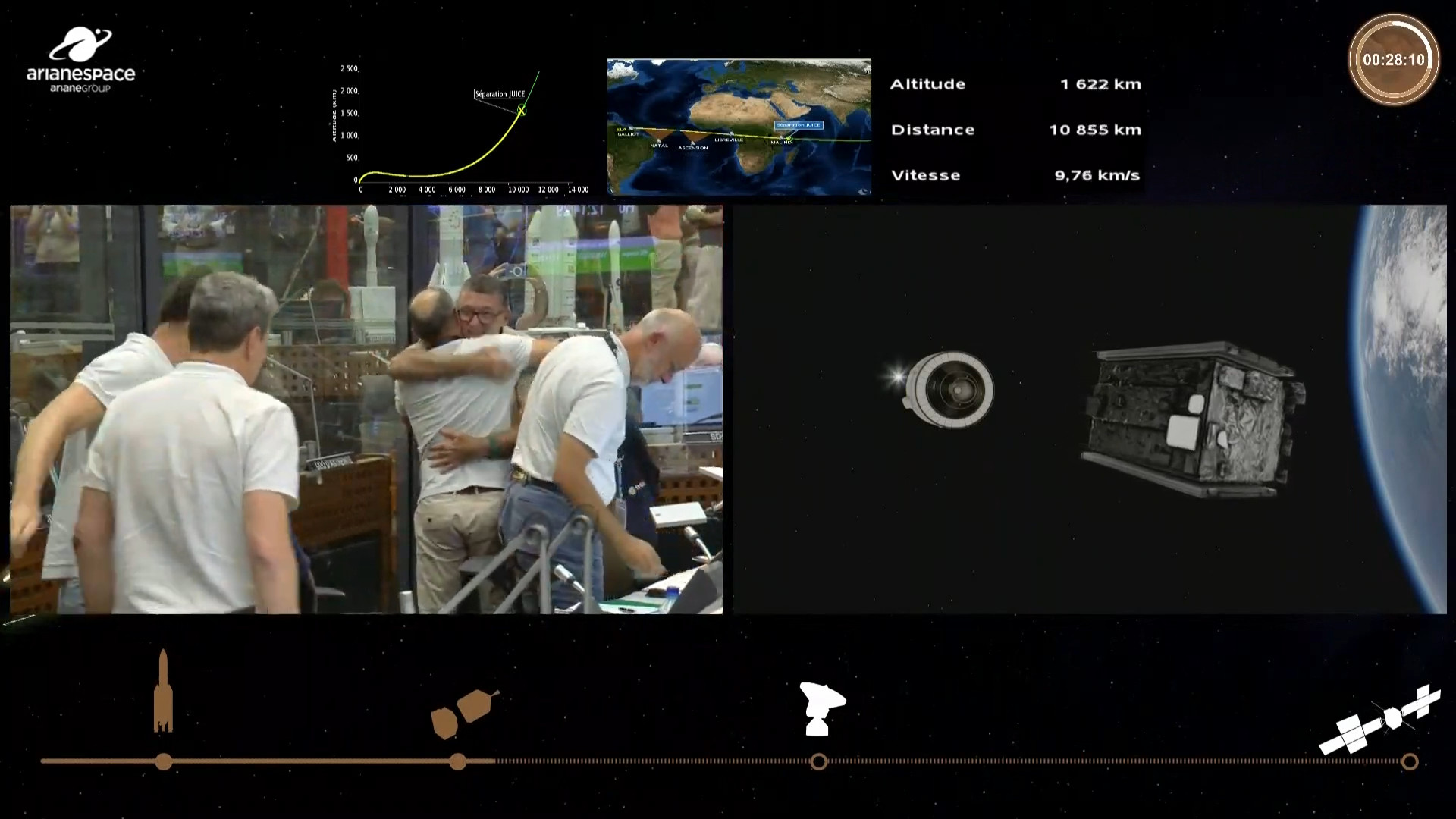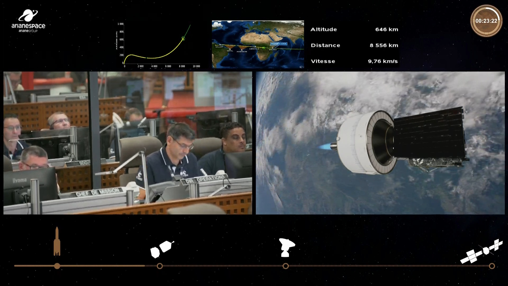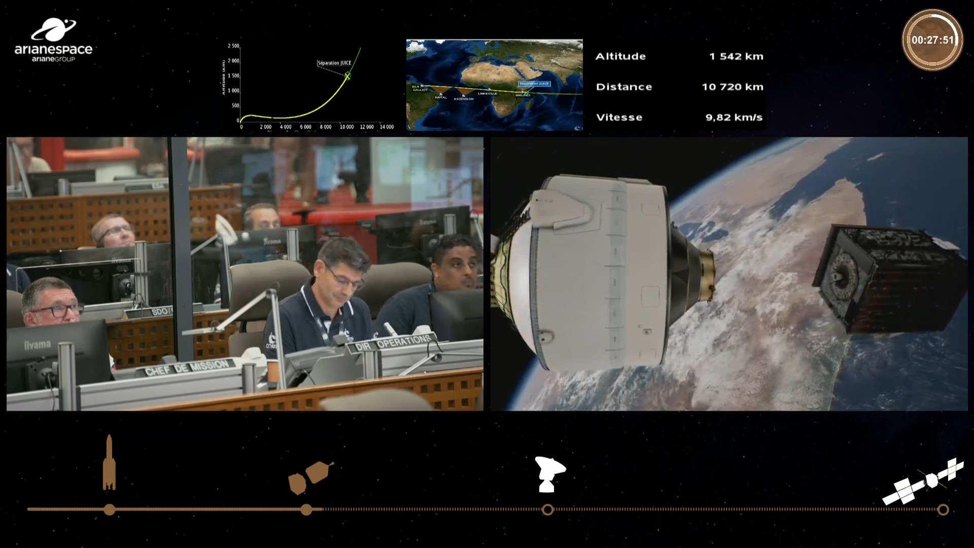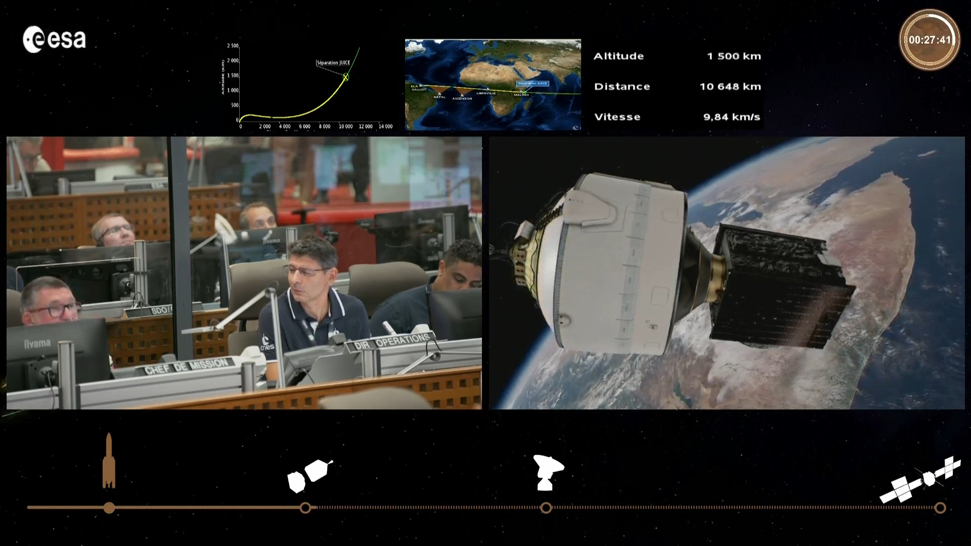 Secondo stadio spento. Si stanno ora compiendo alcune manovre di assetto per impostare il giusto orientamento in vista della separazione di JUICE dal vettore.
